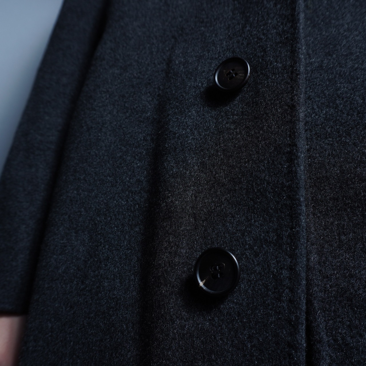 イヴサンローランのステンカラーコート。カシミヤとシルクの混紡素材なのでカシミヤの適度な暖かみとシルクの清涼感が混ざります。そのため、冬だけでなく1年中快適に使用出来るのが特徴です。