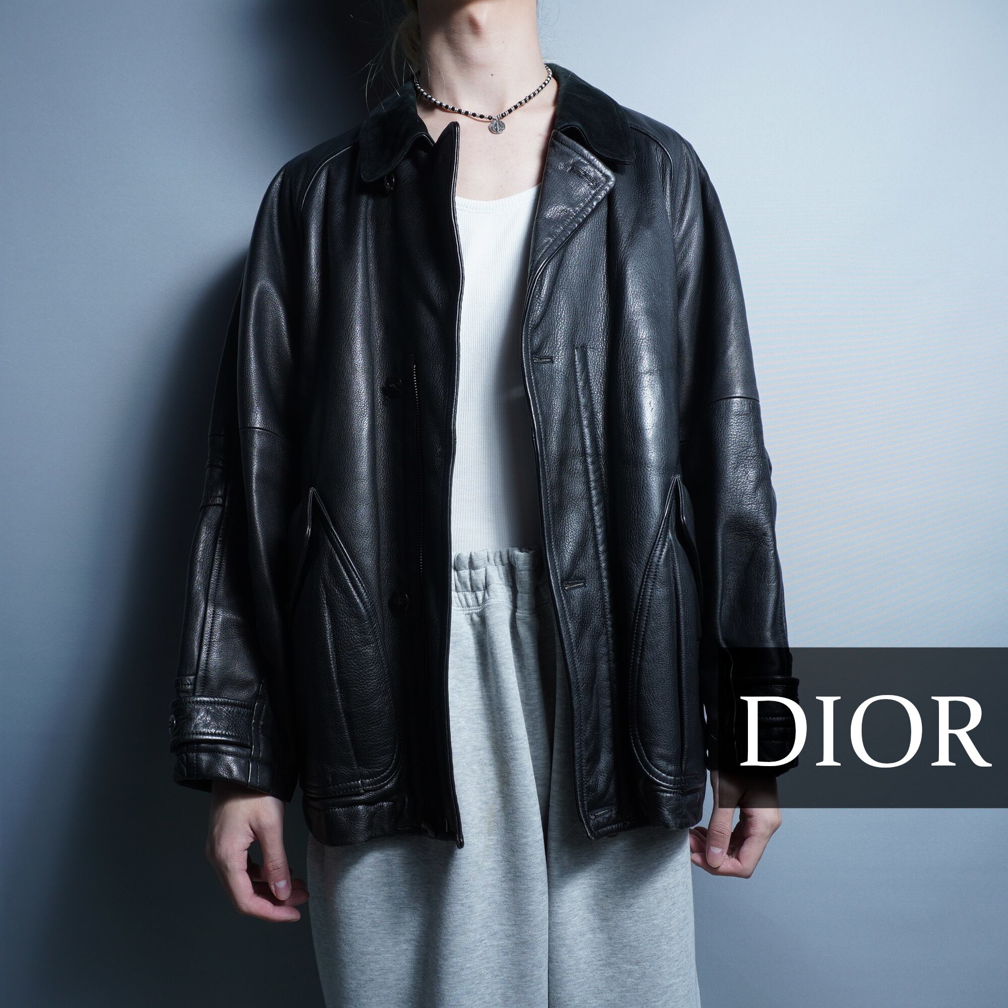 【Christian Dior】クリスチャンディオール "realleather" 本革 スエード切替 ハーフコート:ジャケット black