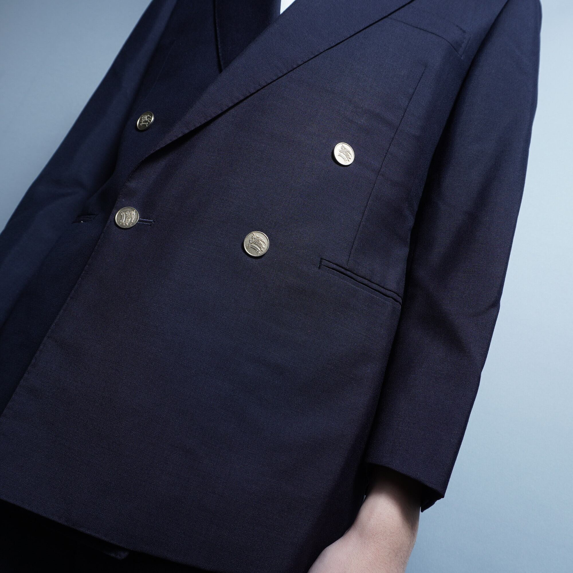 【BURBERRY】バーバリー "刻印入り金ボタン" ウール モヘア セットアップスーツ navy