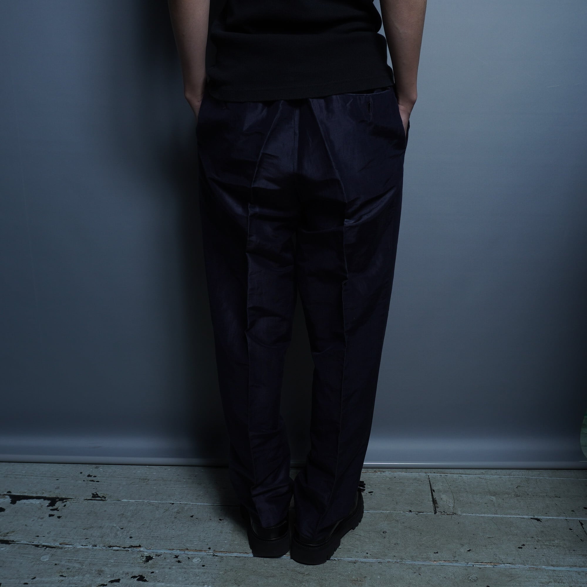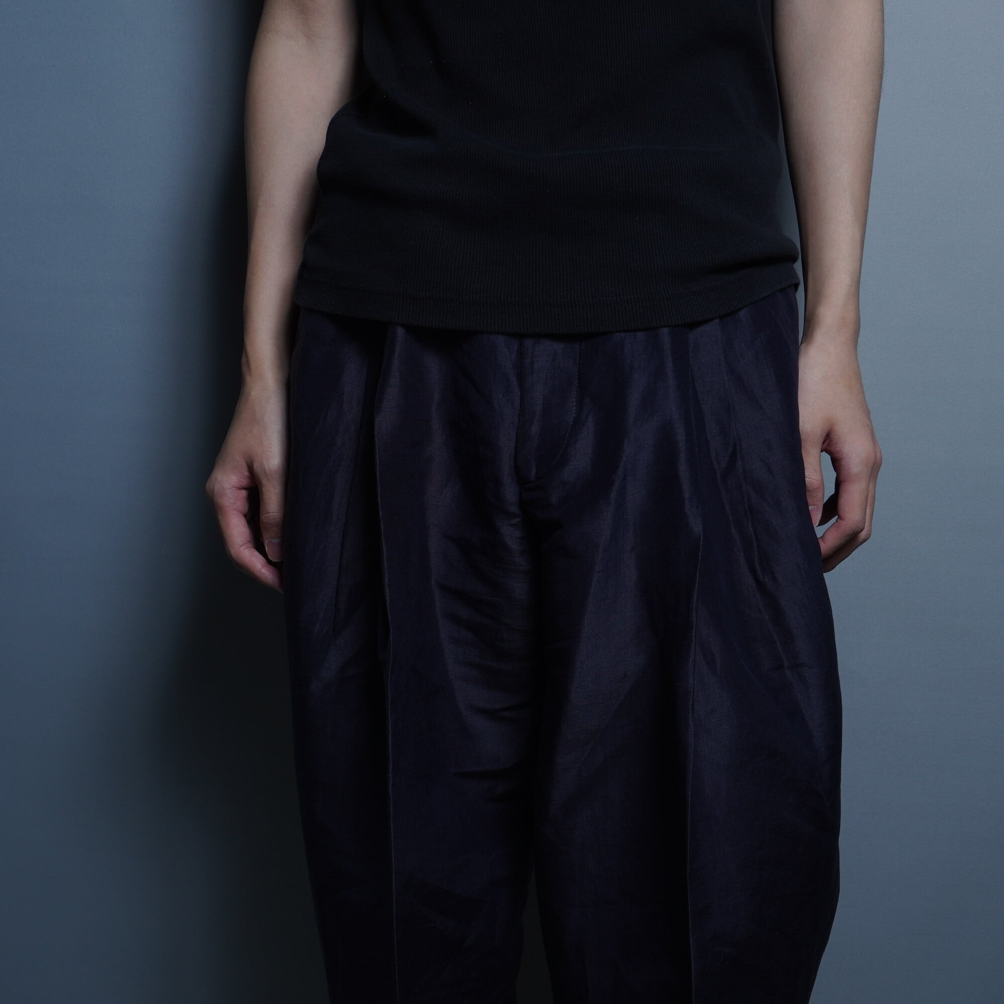 【GIORGIO ARMANI】ジョルジオアルマーニ シルク混 "光沢" ワイドスラックス ネイビー