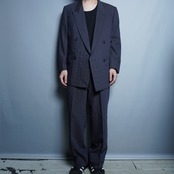 ダブルのセットアップで襟はピークドラペル。服好きが好むディテールではないでしょうか。無地ではなく、シャドーストライプ柄なのもデザイン性があって面白いと思います。