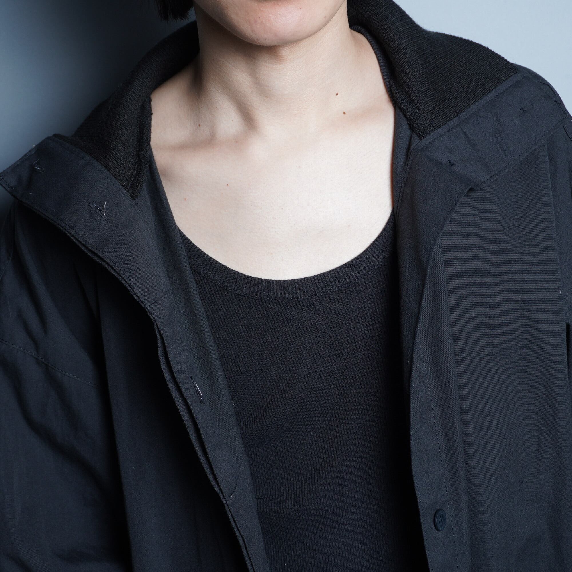 ロゴデザインが特徴的なイッセイミヤケの黒のロングコート。さりげなくロゴが映える一着となっており、素材感からしてカジュアルなシーンからドレスコードを気にするシーンの外しとしても使える一品となっています。秋から冬のアウターとして是非。