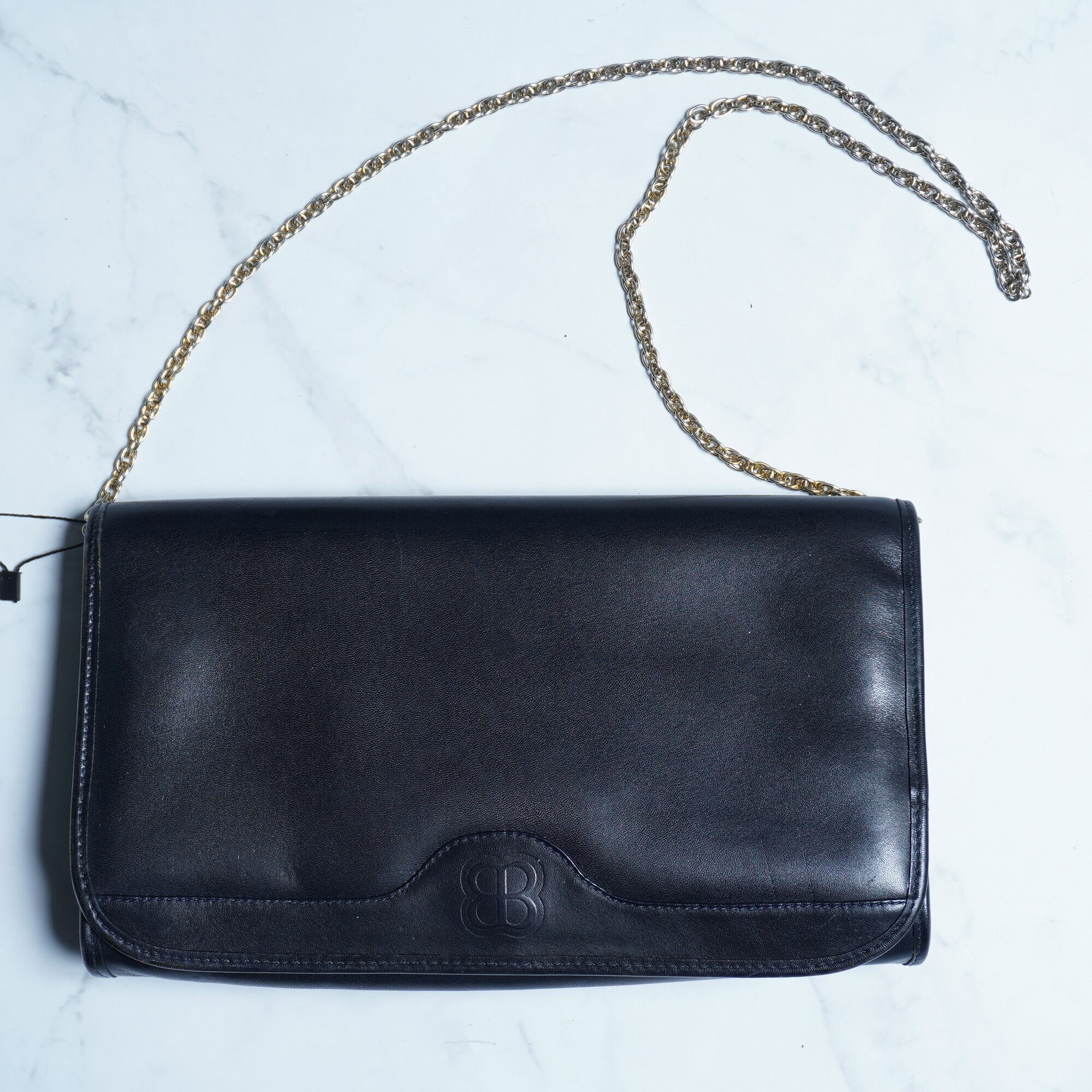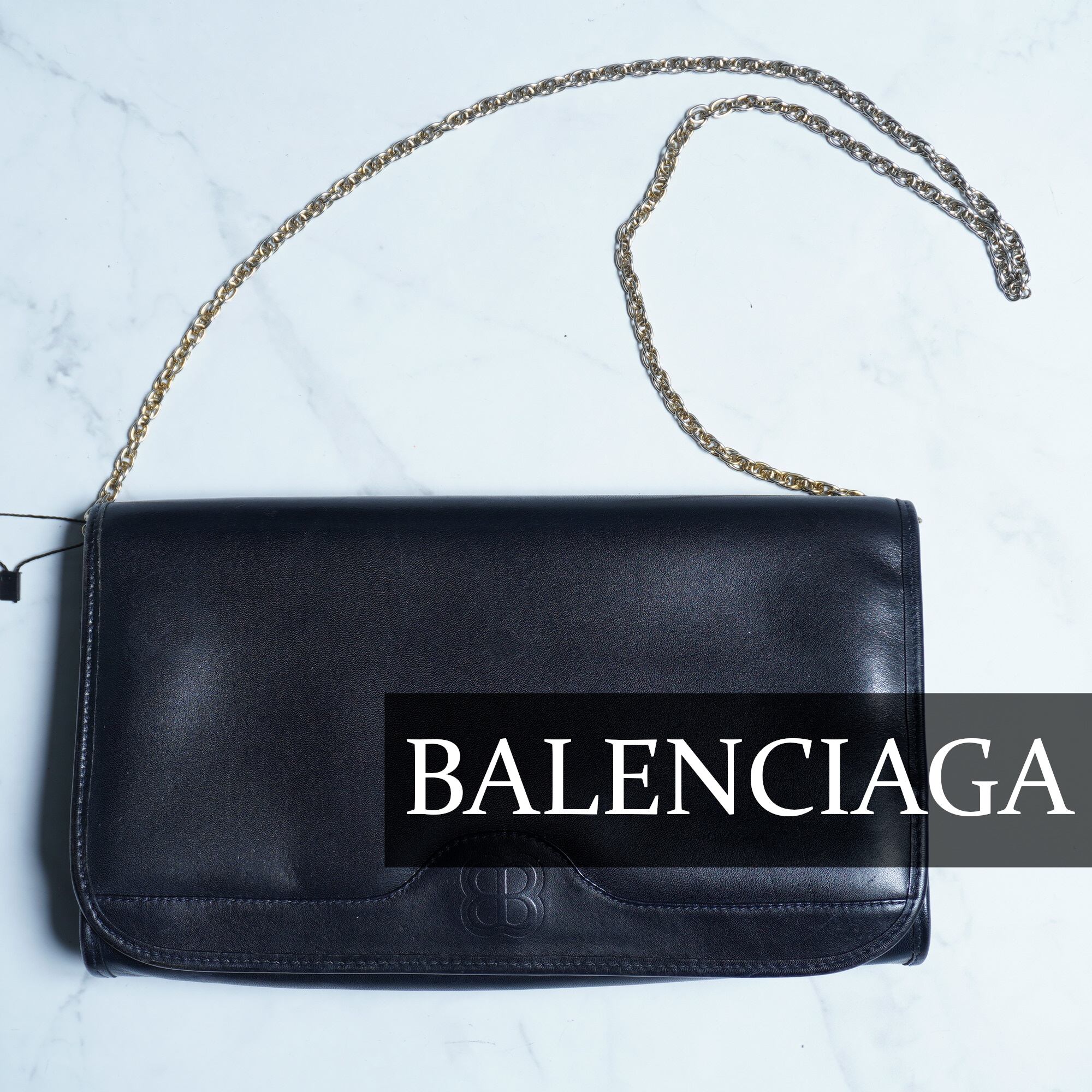 【BALENCIAGA】バレンシアガ "BBロゴ入" realleather 本革 チェーンストラップショルダー black