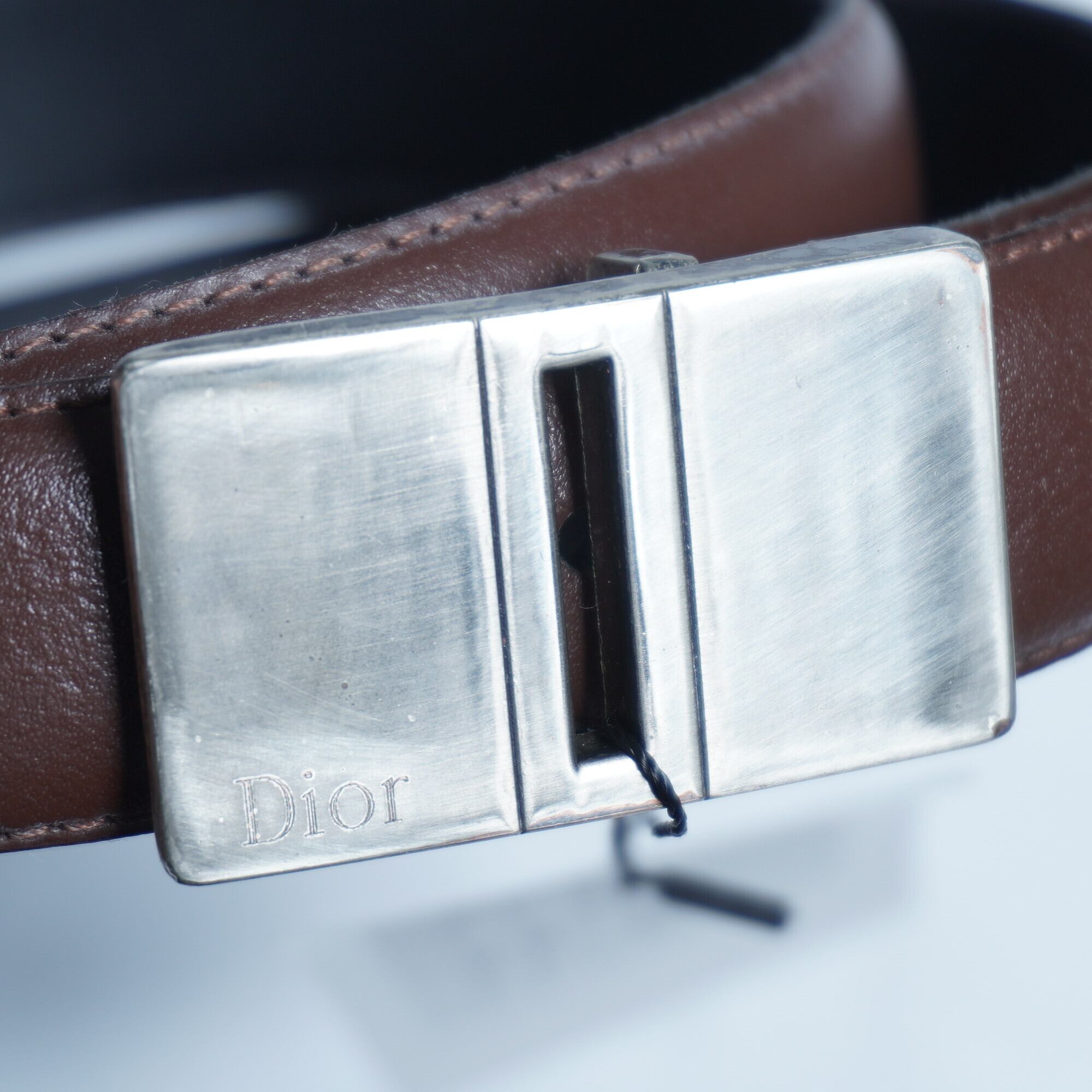 【Christian Dior】クリスチャンディオール "DIORロゴ入" レザーベルト silver×brown