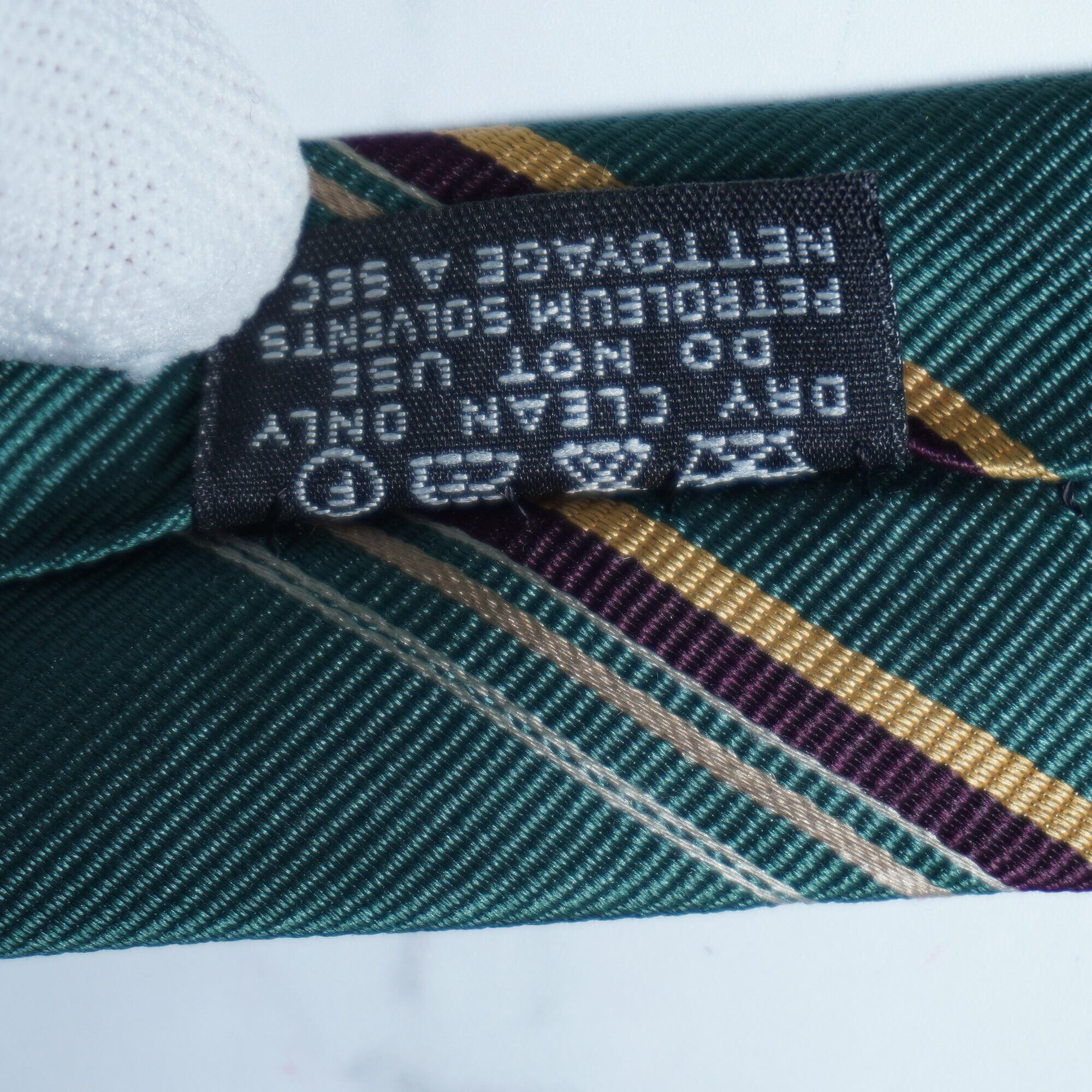 ダークグリーンを基調とした洗練されたデザインが特徴です。ブランドを象徴するココマークや、上品な幾何学模様が織り込まれており、高級感を漂わせます。シルク素材の上質な光沢感が、ビジネスシーンに華やかさを添えます。シックな色味と洗練されたデザインが、大人の男性の魅力を引き出すアイテムです。