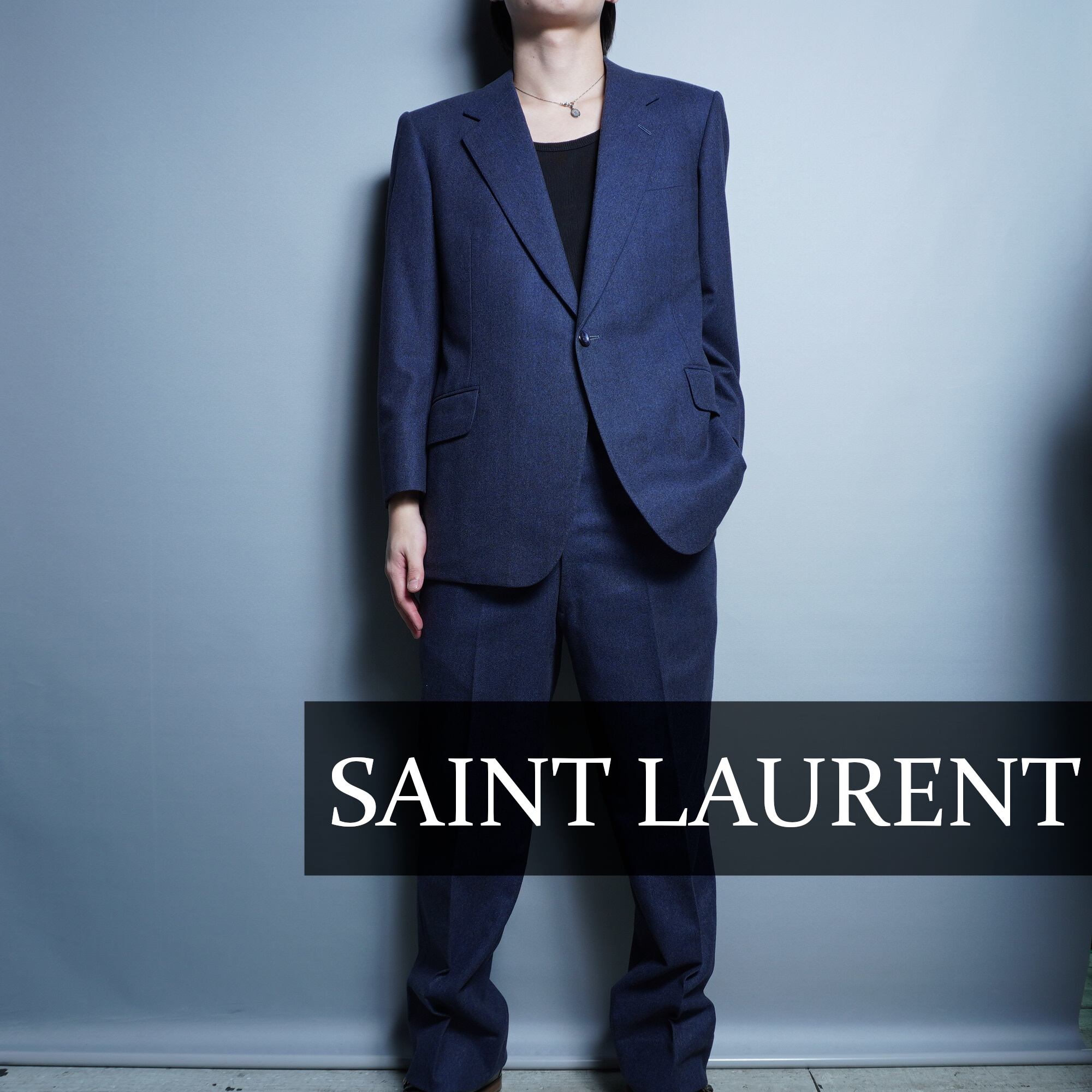 【Yves Saint Laurent】サンローラン ウールネイビーシングルセットアップスーツ
