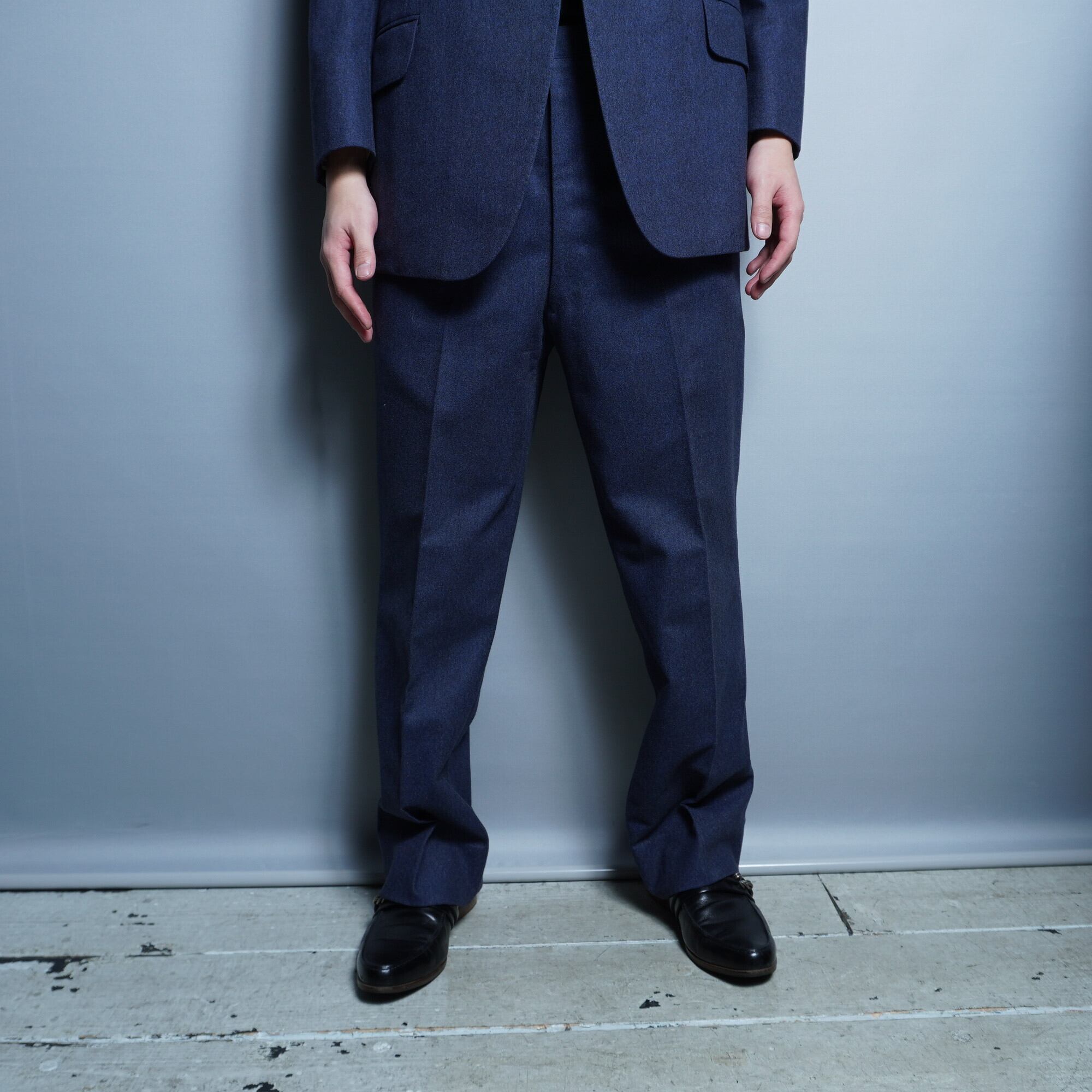 しっかりと厚みのあるウールが使用されたシングルセットアップ。厚手のウールで寒い冬の季節もセットアップ単体でも十分に保温してくれそうな一着。