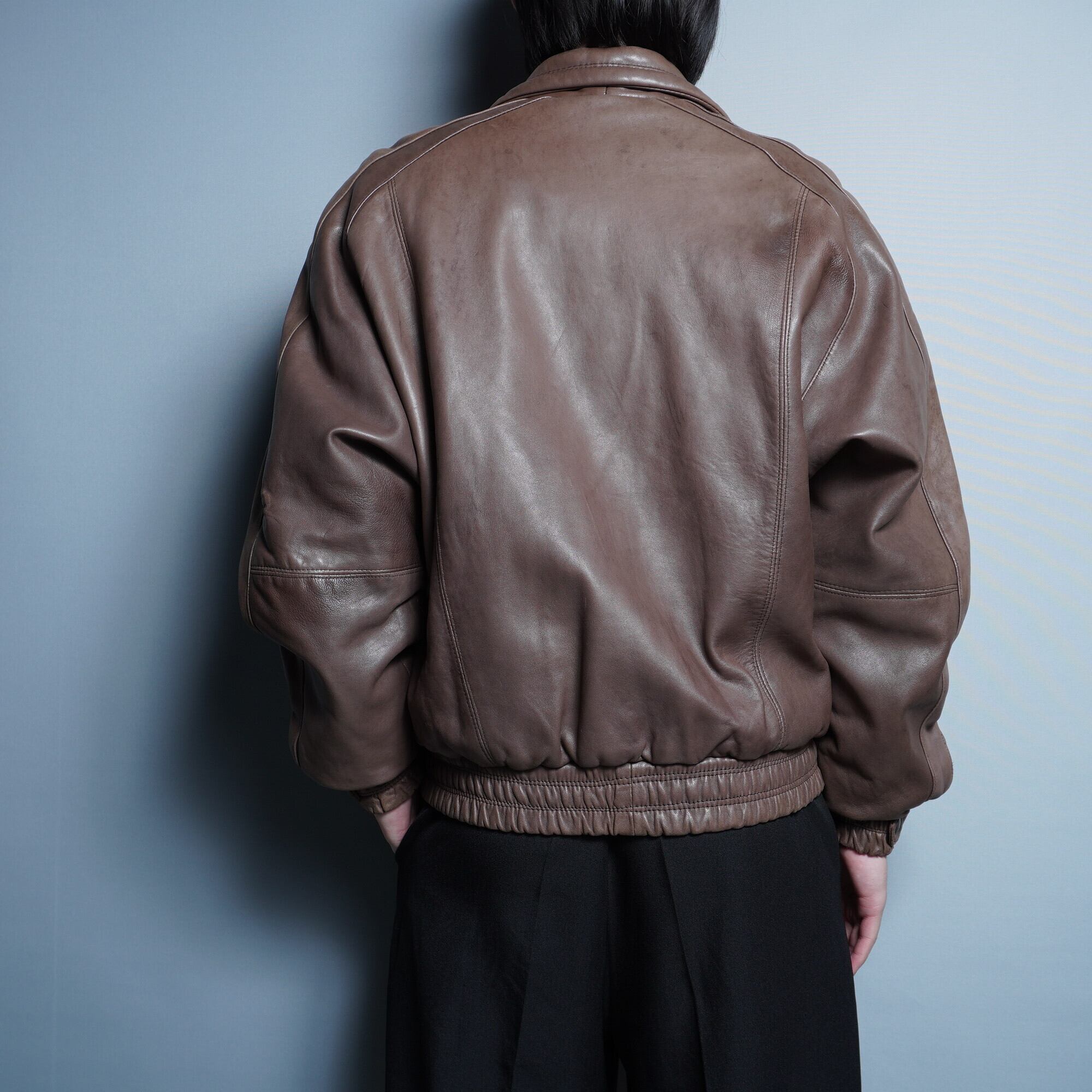 【Christian Dior】クリスチャンディオール レザーブラウンボンバージャケット 38