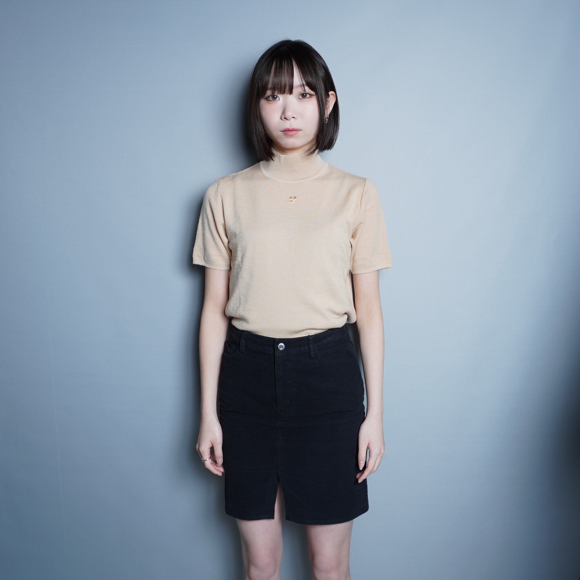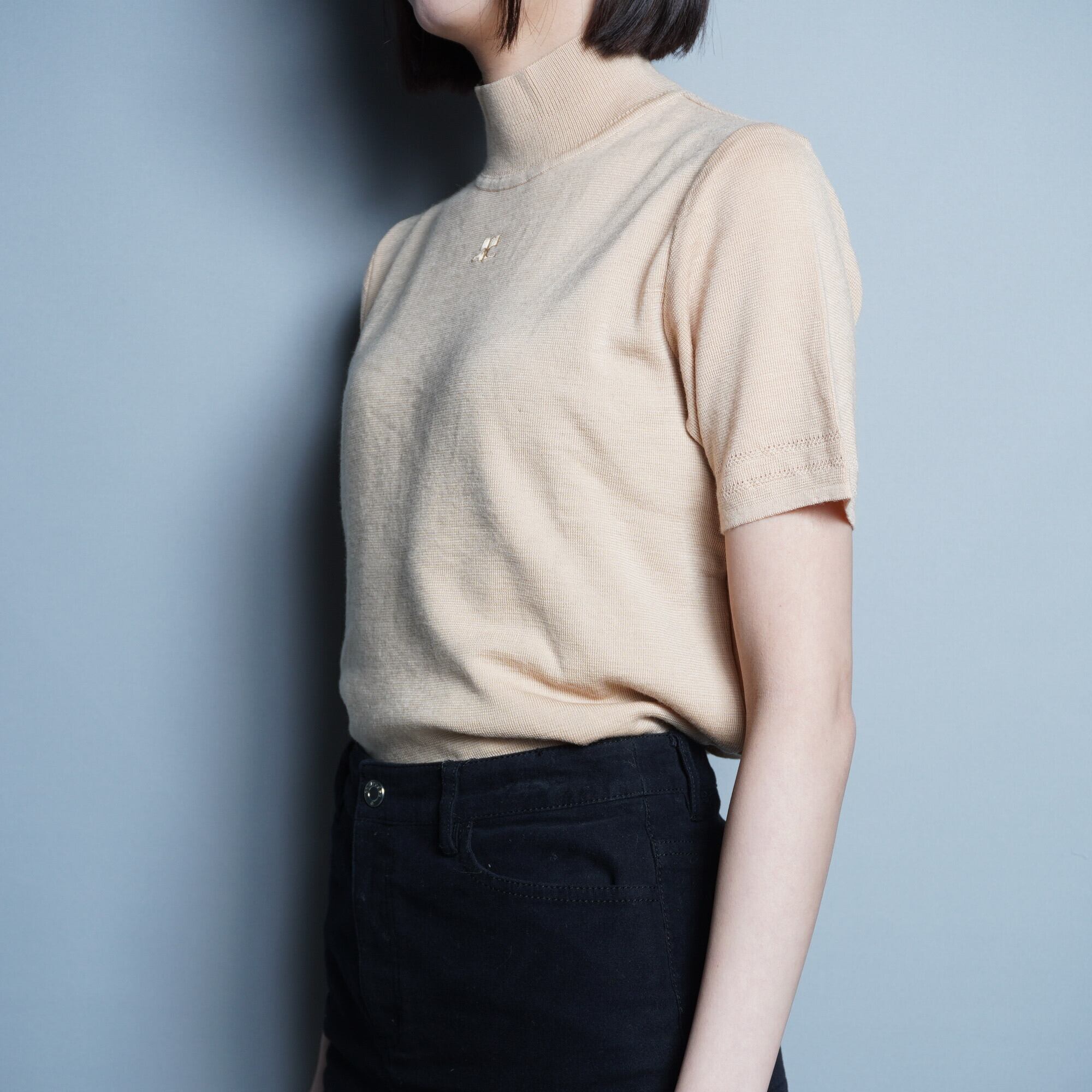 【Courrèges】クレージュ "ロゴ入り" Wool SSニット Beige