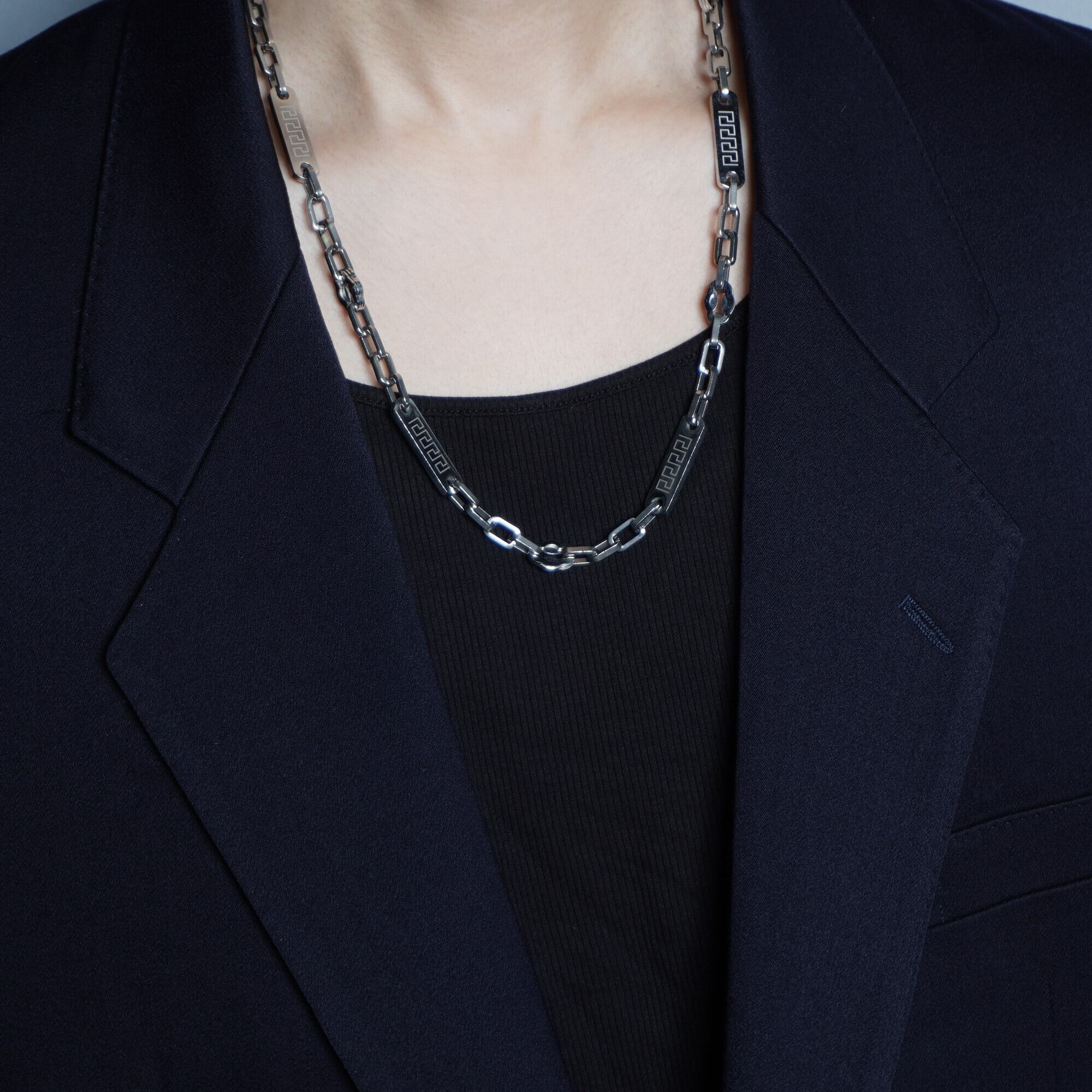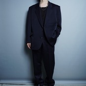 ジャケットは重厚感のあるダブルブレストデザイン。胸元に深く重なるフロントが男性らしい威厳を演出し、スタイルを立体的に見せます。クラシックながら現代的なシルエットが特徴です。