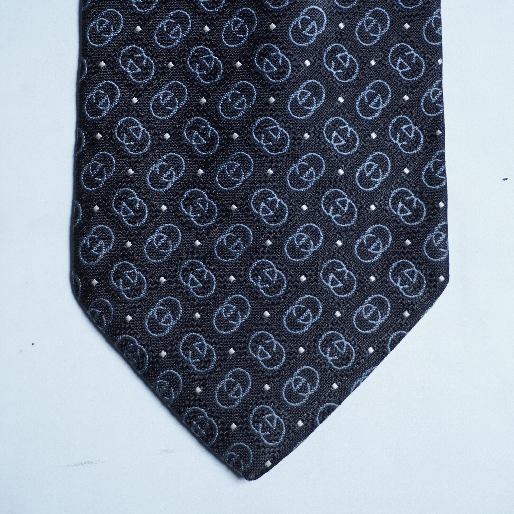 当ブランドを代表するGCロゴが総柄のパターンとして使用されたネクタイ。一目見ただけでGUCCIであることが分かるアイコニックなアイテム。