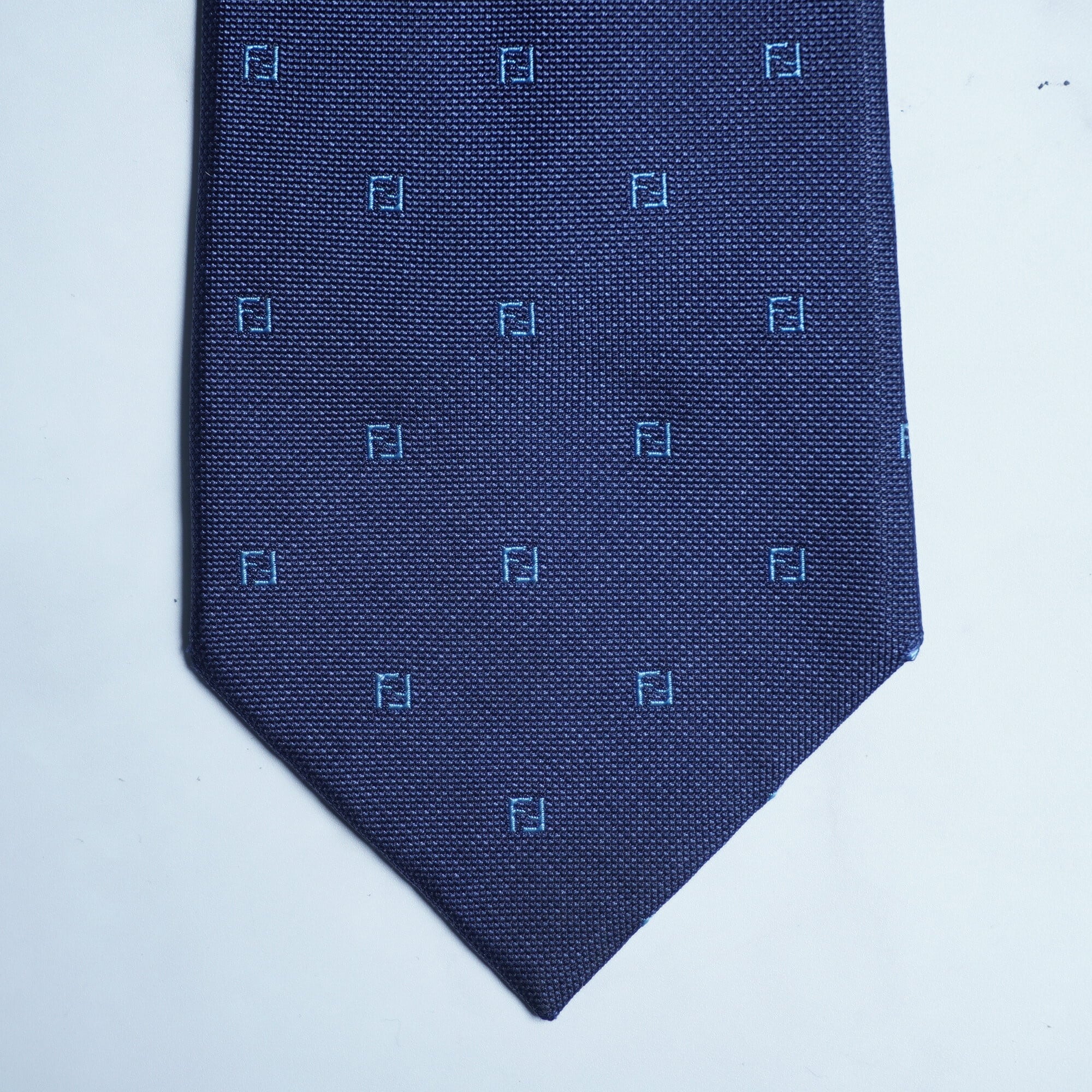【FENDI】フェンディ "SILK100%" イタリア製 ズッカ柄 ホログラム入り ネクタイ Navy