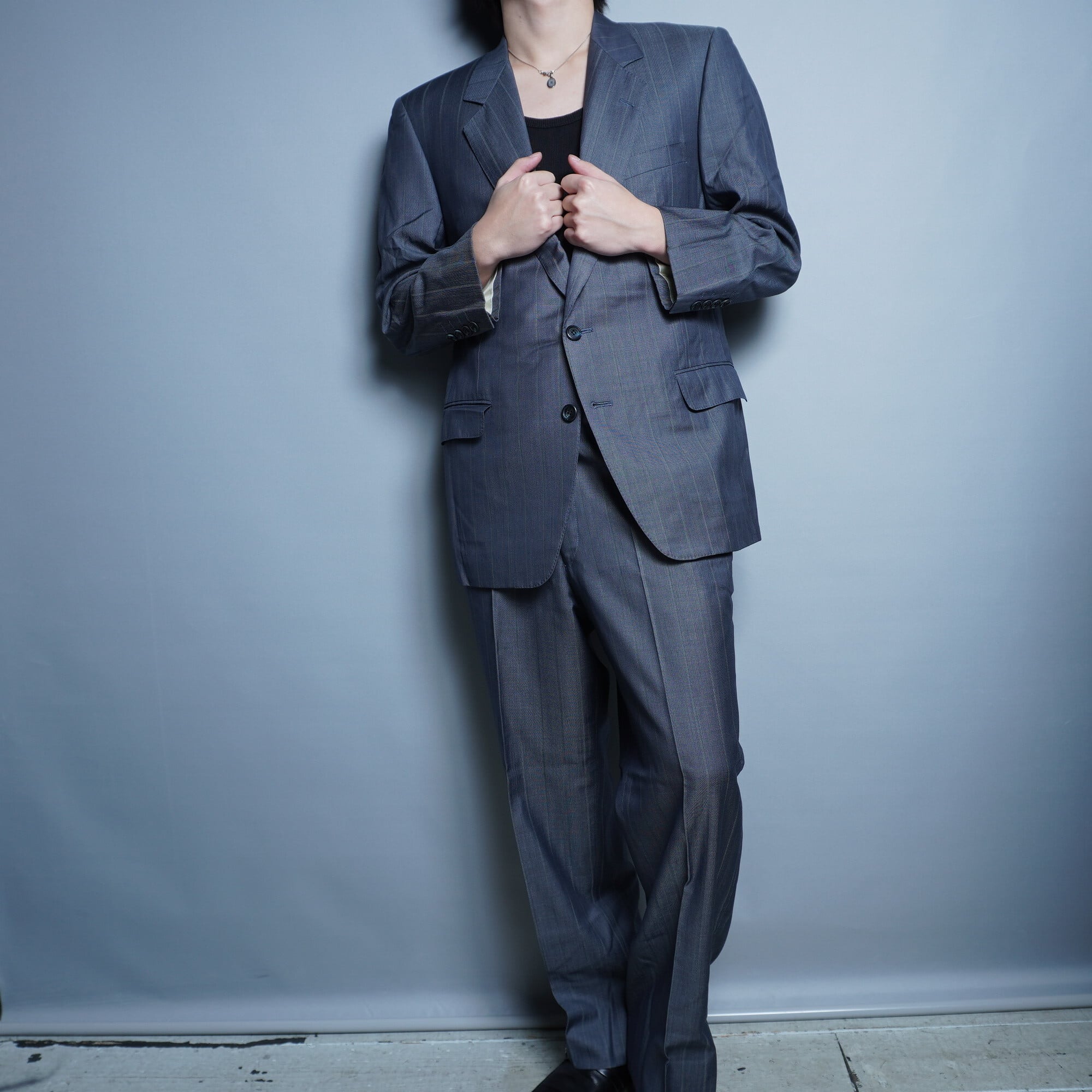 【GIVENCHY】ジバンシー シャイニーカラーグレー ストライプセットアップスーツ