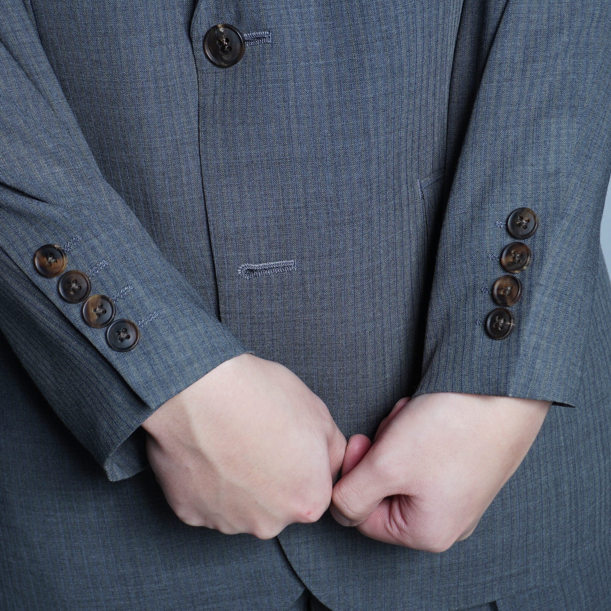 洗練されたチャコールストライプが際立つバーバリーのシングルボタンセットアップ。シンプルながらもエレガントな印象を与え、ビジネスシーンやフォーマルな場面でも大活躍する一着です。グレーの落ち着いた色合いは、コーディネートの幅を広げ、様々なスタイルに合わせることができ、持っていて損のない一着になっています。