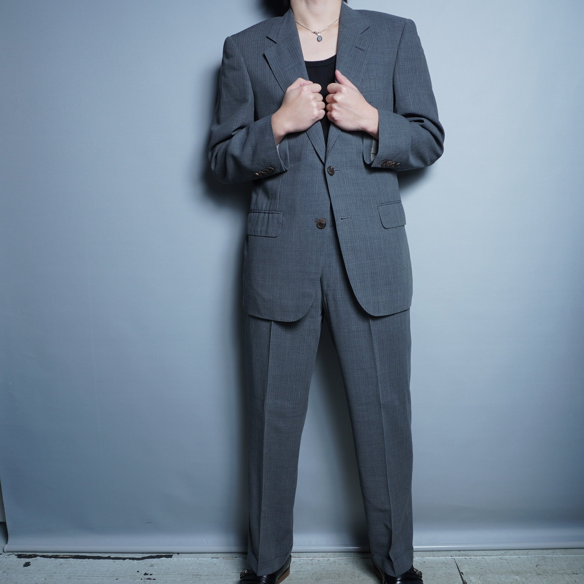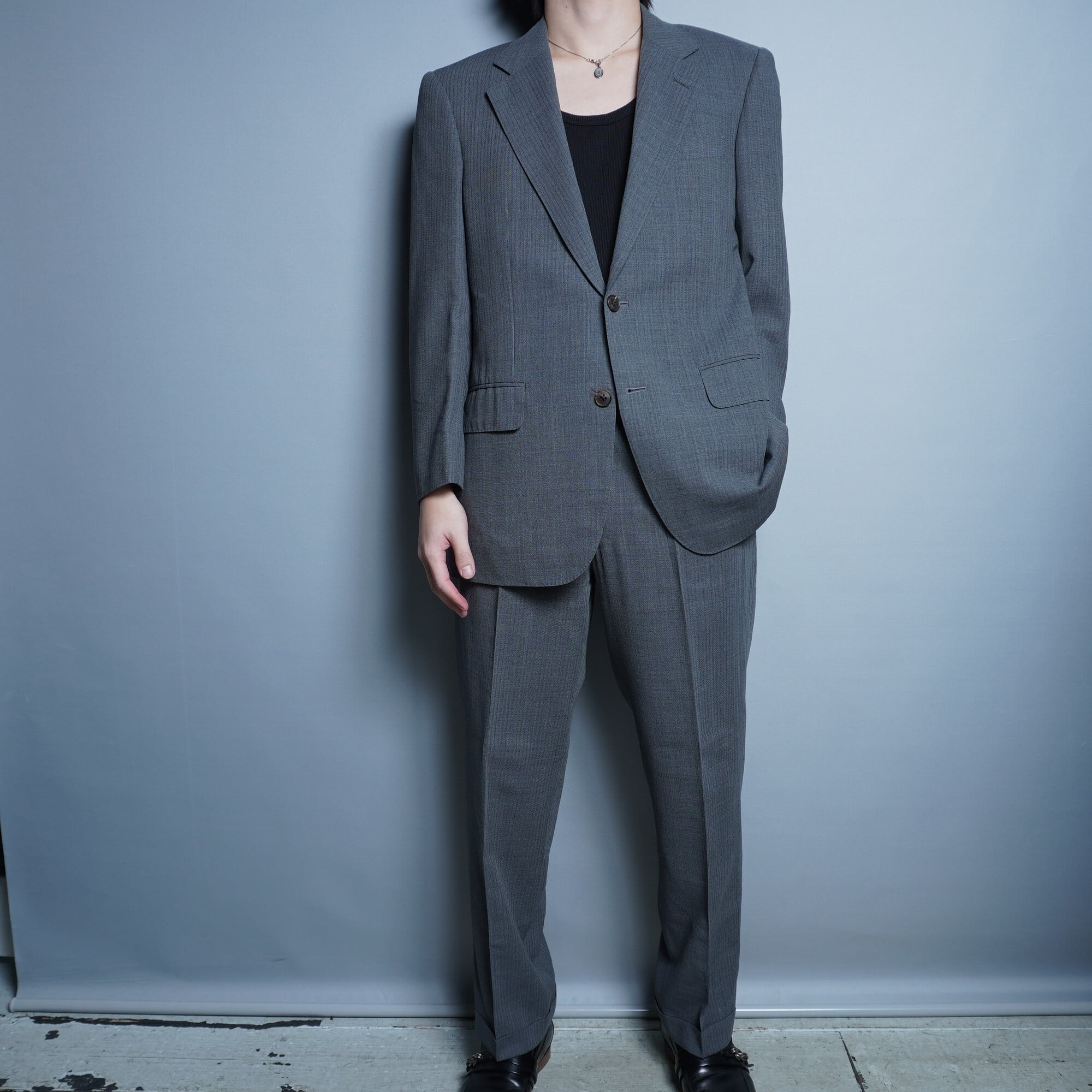 【BURBERRY】バーバリー BLACK LABEL チェンジポケット チャコールストライプ シングルセットアップスーツ