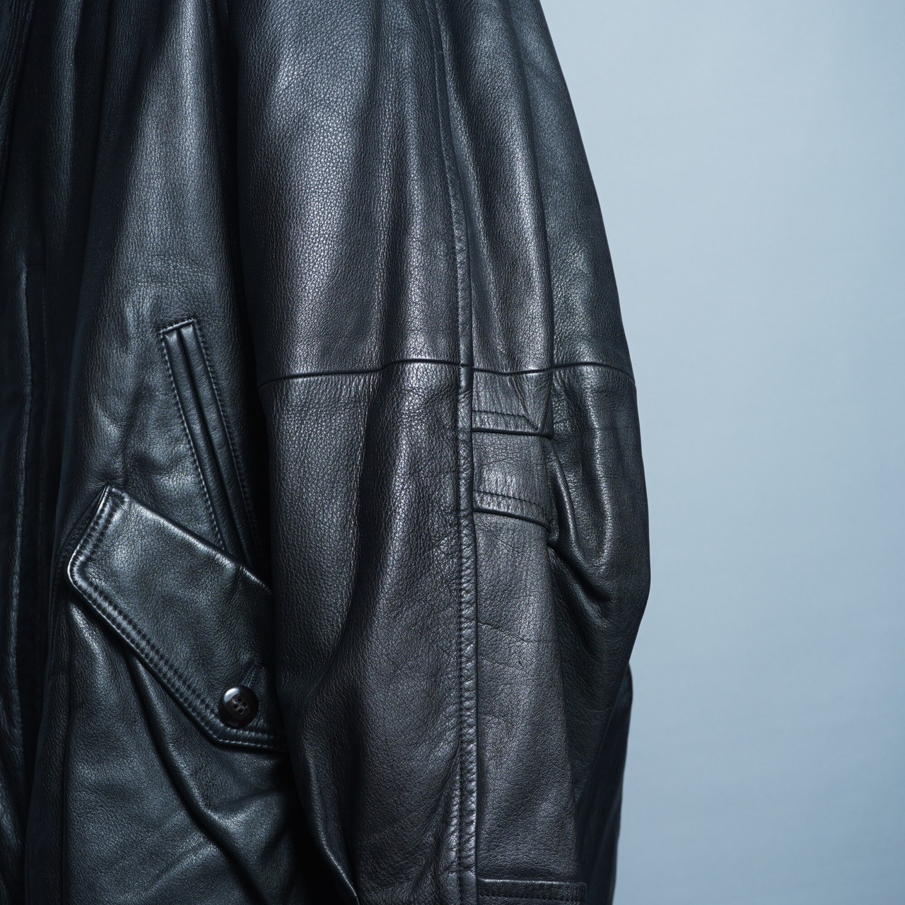 上質なカウレザー(牛革)を使用した、クラシカルなボンバージャケットです。革の切り替えデザインがアクセントとなり、中綿入りで保温性も確保されています。レザーの質感と艶が高級感を演出しています。