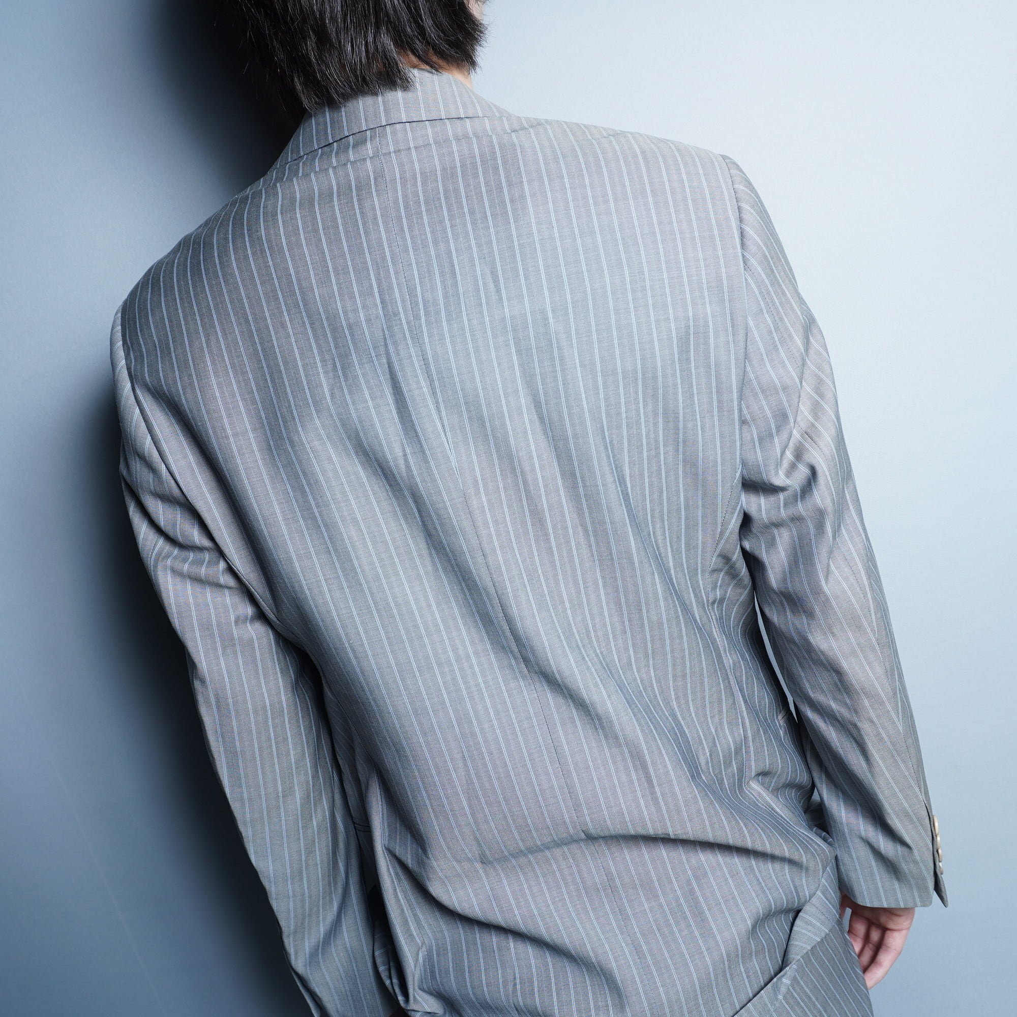 【ARMANI】アルマーニコレッツォーニ “WOOL100%”ブルーストライプシングルセットアップスーツ light grey