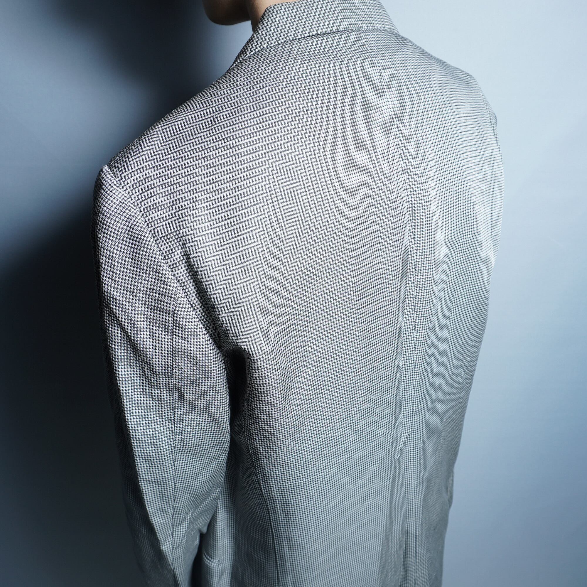 イギリス発祥の千鳥格子を用い、シンプルでありながらも存在感を放つ。軽やかなリネン混素材を使用しておりドレープ感が美しくスマートでありながら着心地の良さを兼ね備えてた逸品。