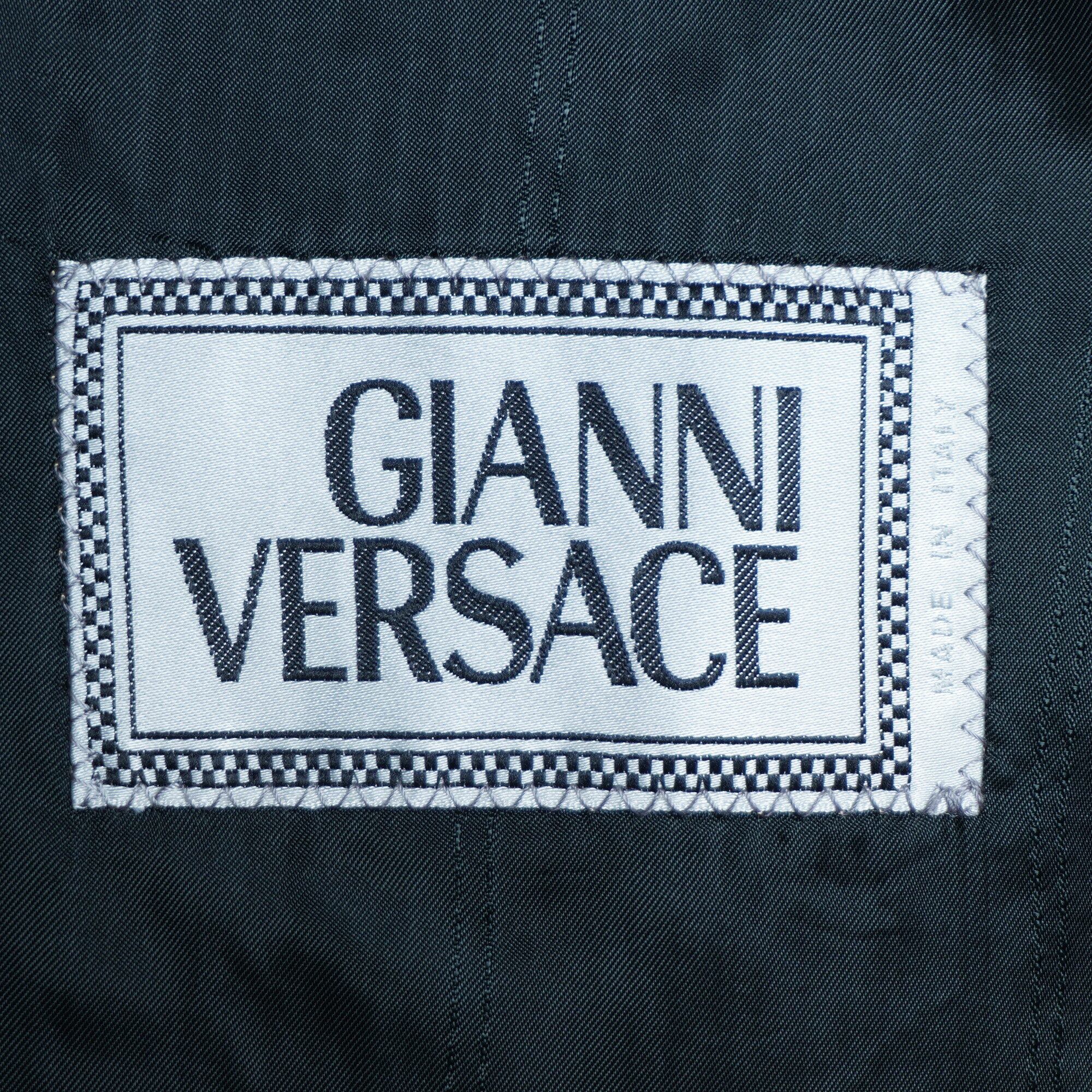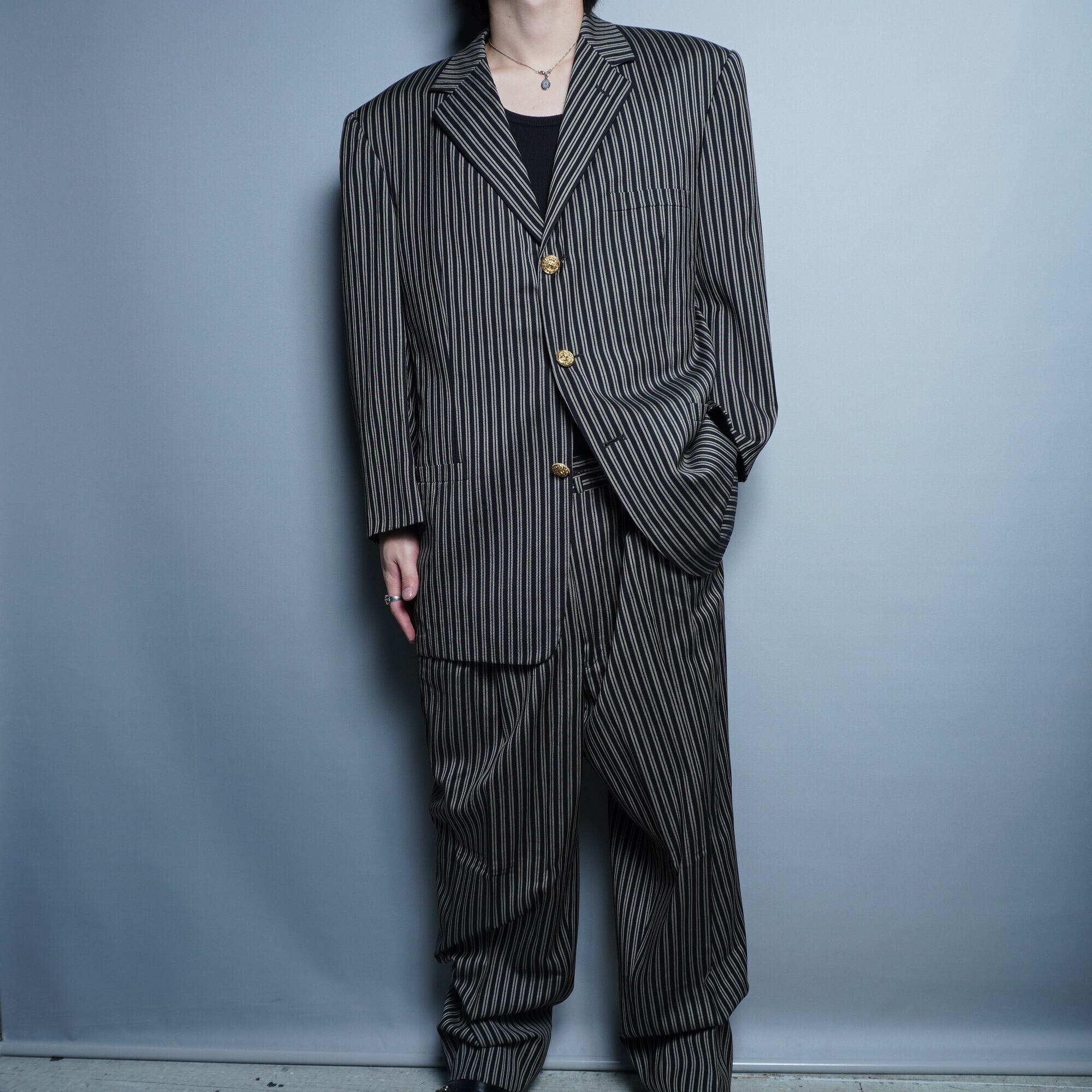 【VERSAVCE】ジャンニヴェルサーチェ "メドゥーサボタン"レジメンタルストライプ3Bシングルセットアップスーツ gray×navy