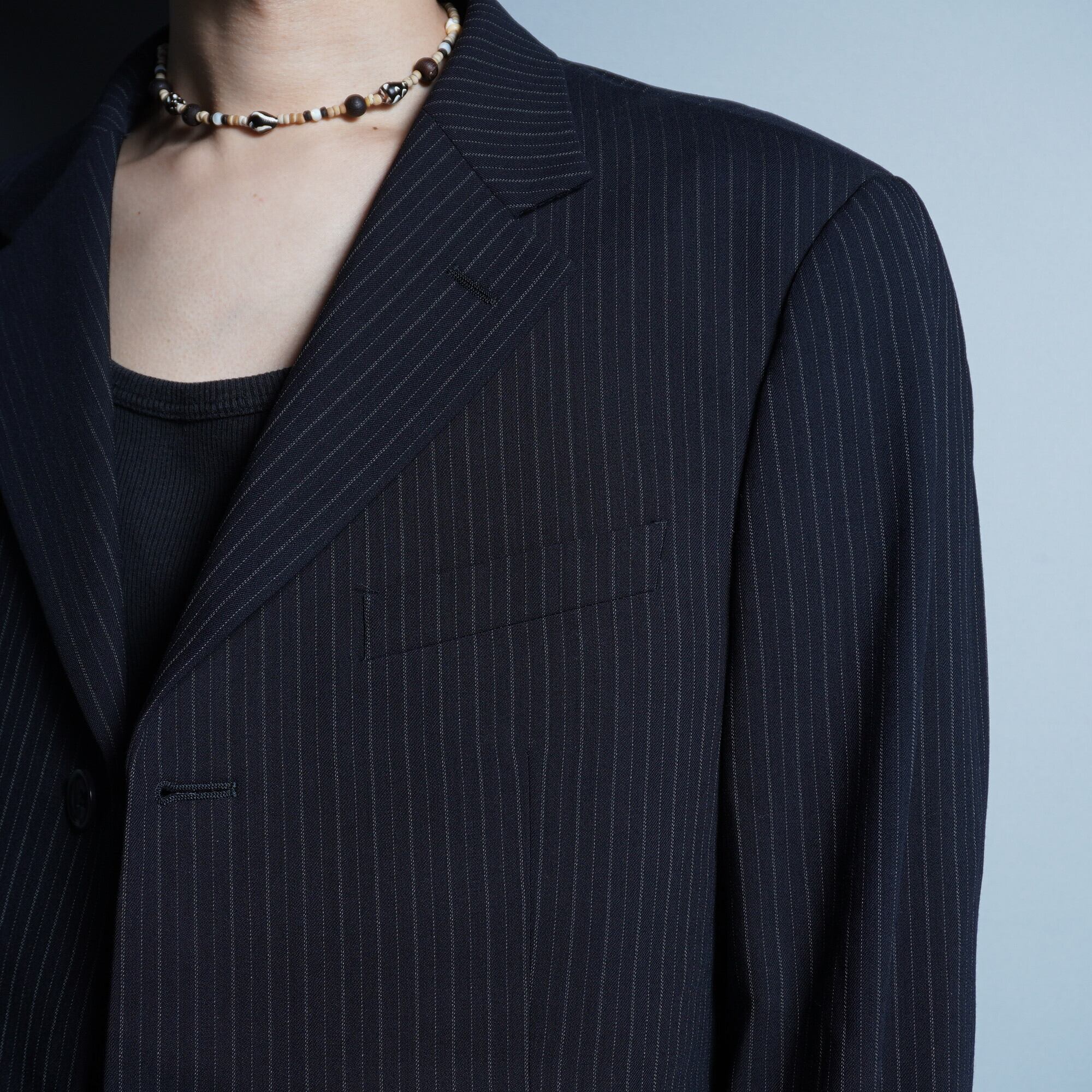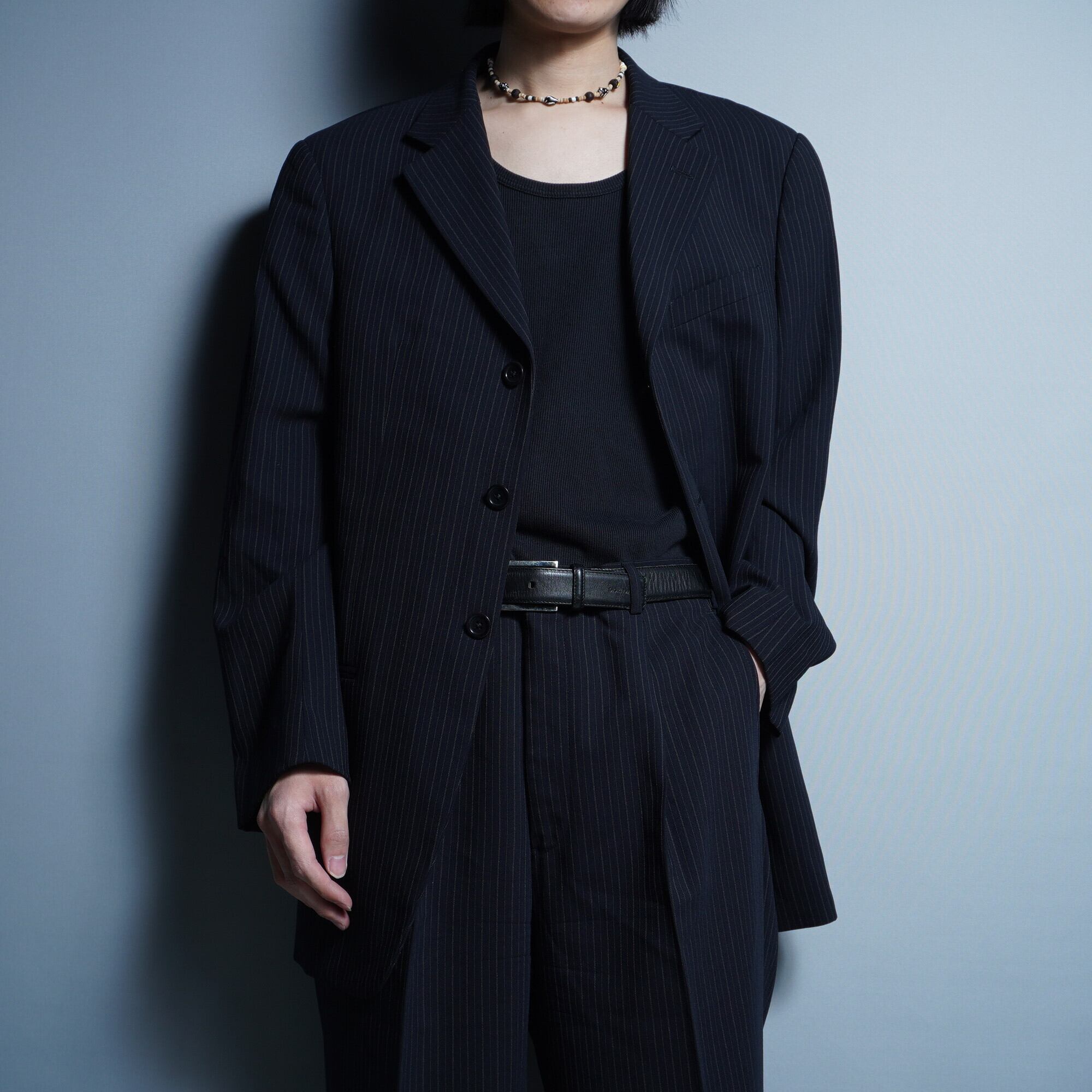 【ARMANI】ARMANI COLLEZIONIウールシングル3Bストライプセットアップスーツnavy