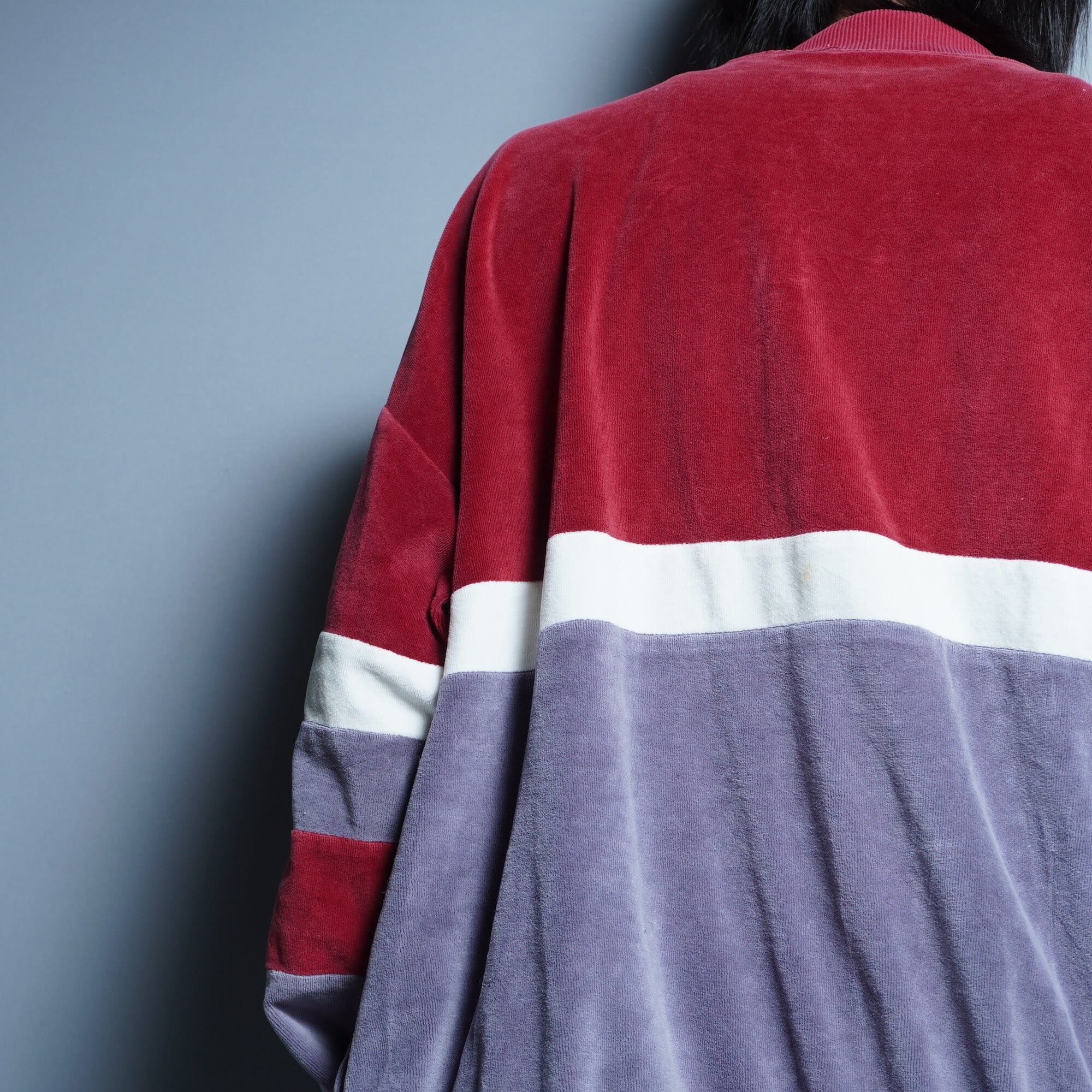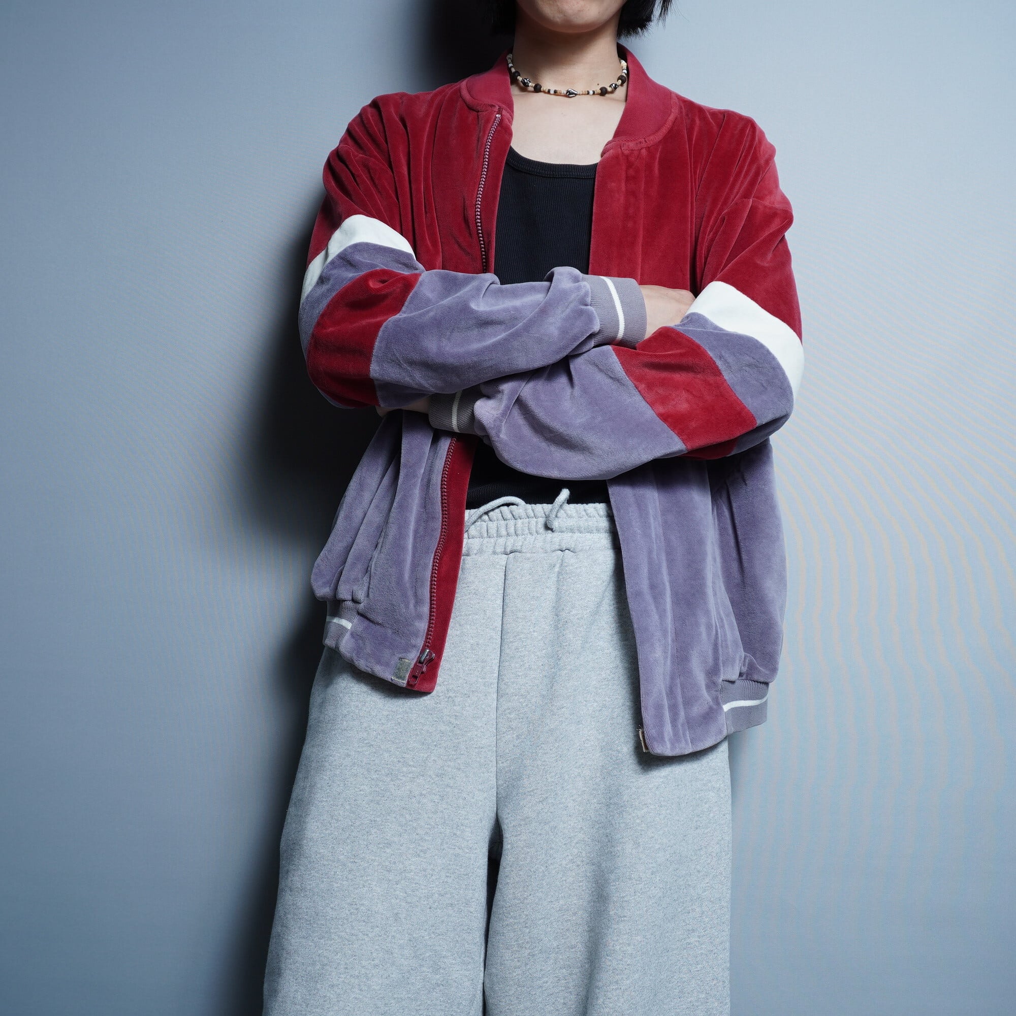 【Christian DIOR】クリスチャンディオール 切り替えカラーベロア比翼ジップアップブルゾン