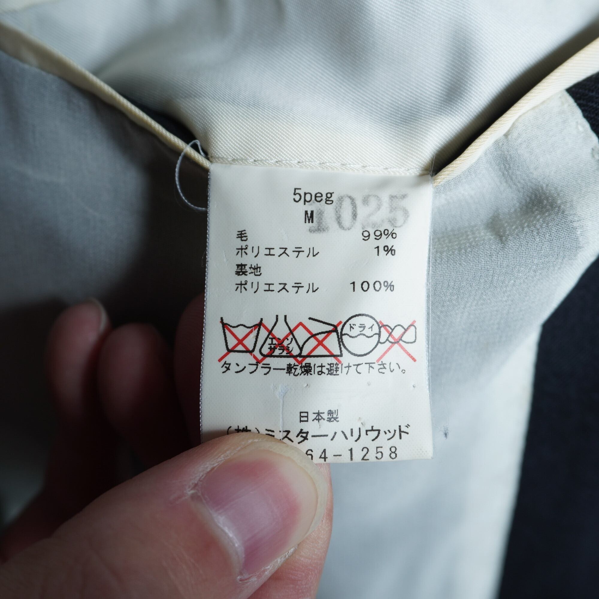 エヌハリウッドののシングルセットアップ。ヘリンボーンが左綾右綾交互に織りなしており、洗濯などによる変形が起きにくい強みを持っている耐久性、デザイン性を兼ね備えた優れものです。