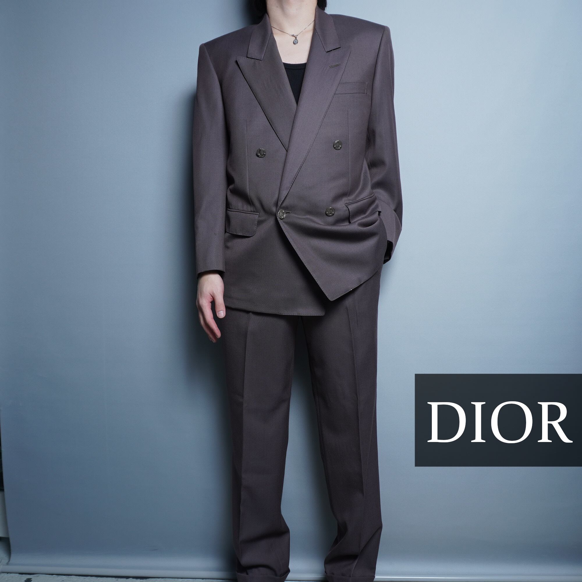 【Christian Dior】クリスチャンディオール メタルボタン刻印 ダブルセットアップスーツ Grey Brown