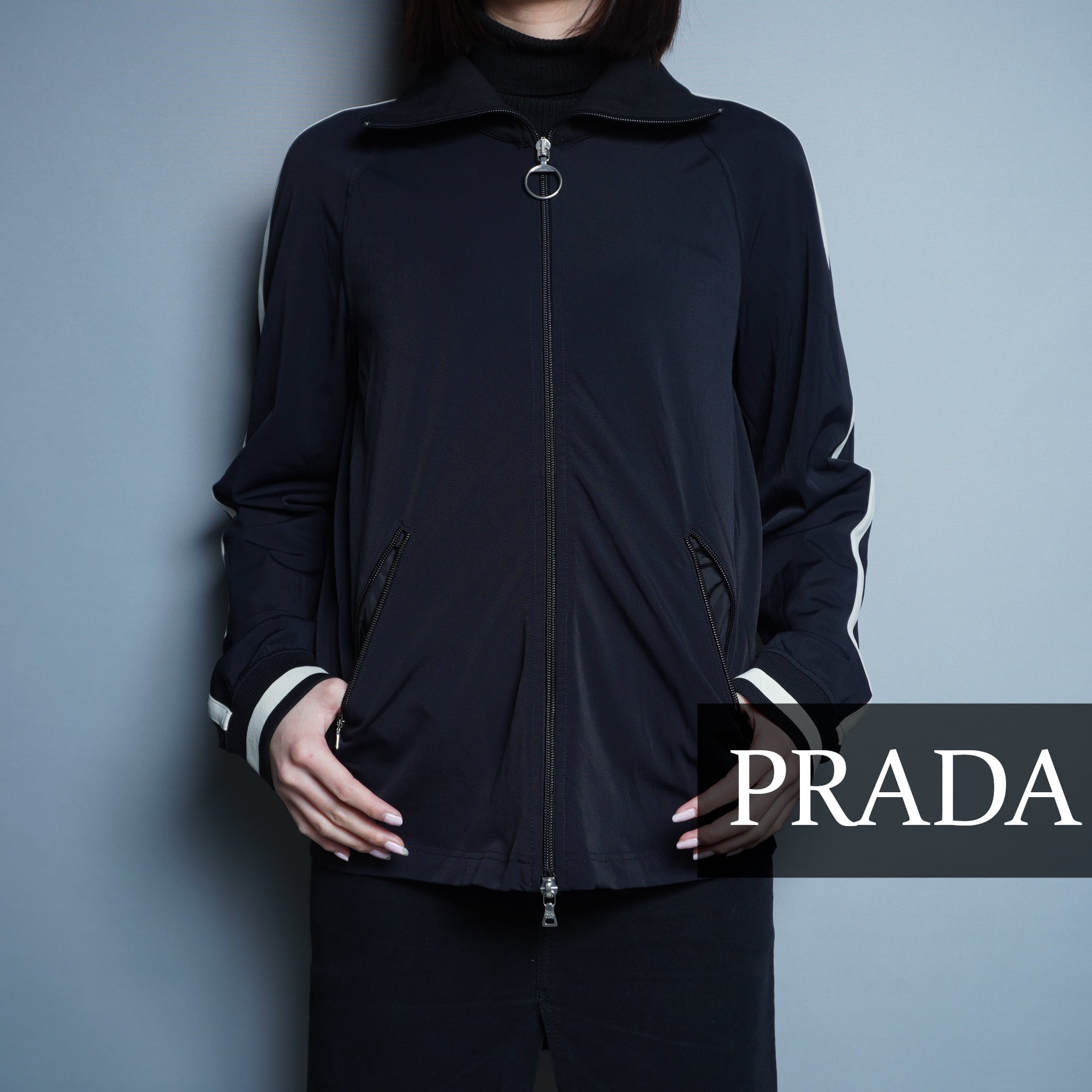 【PRADA】White Sideline Track Jacket High Neck Black ホワイトサイドライン トラックジャケット ハイネック black
