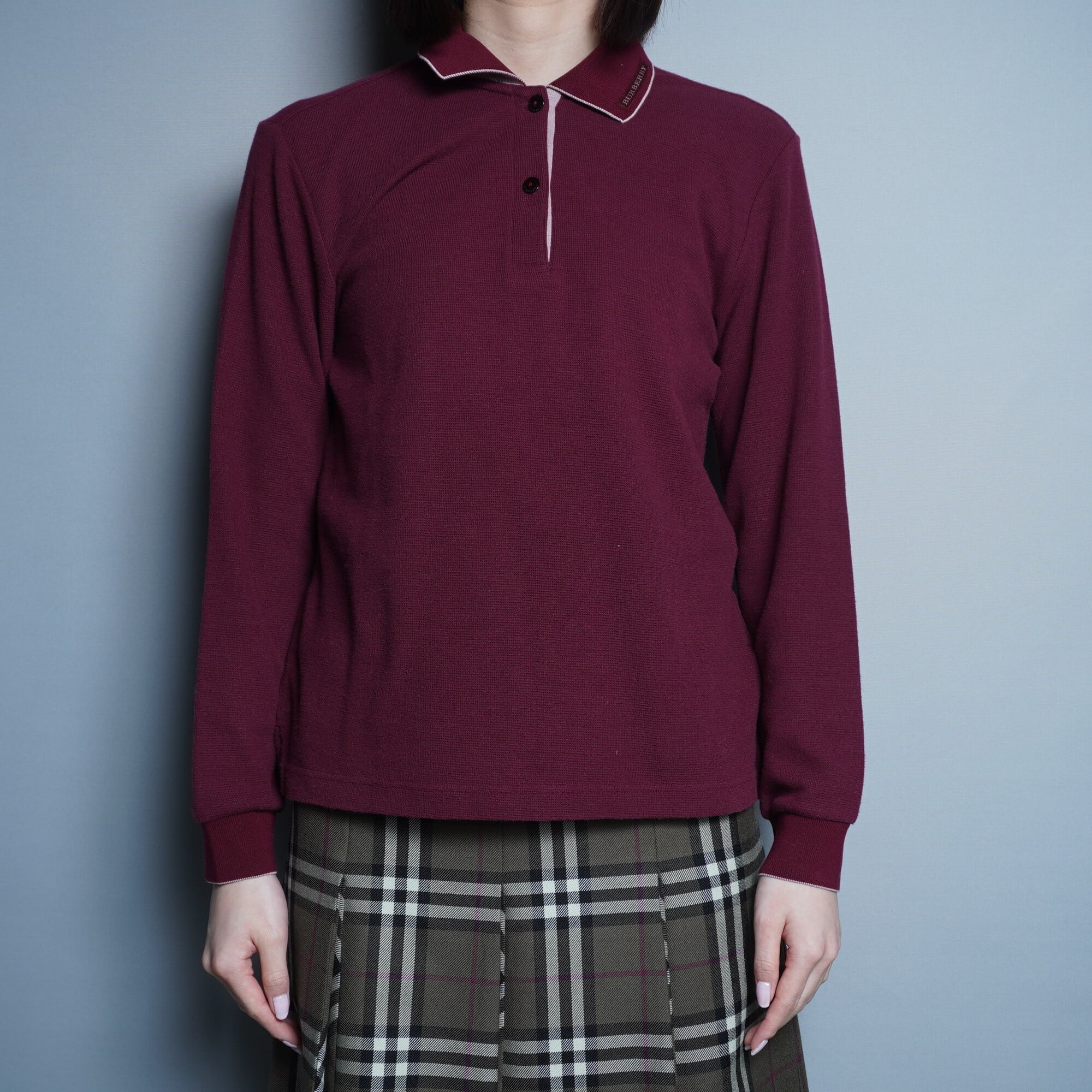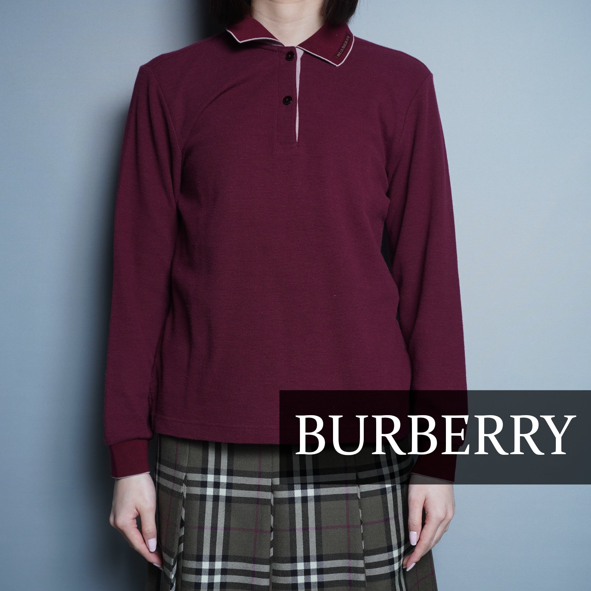 【BURBERRY】バーバリー 襟ロゴ入 ロングスリーブ ニットポロ Bordeaux