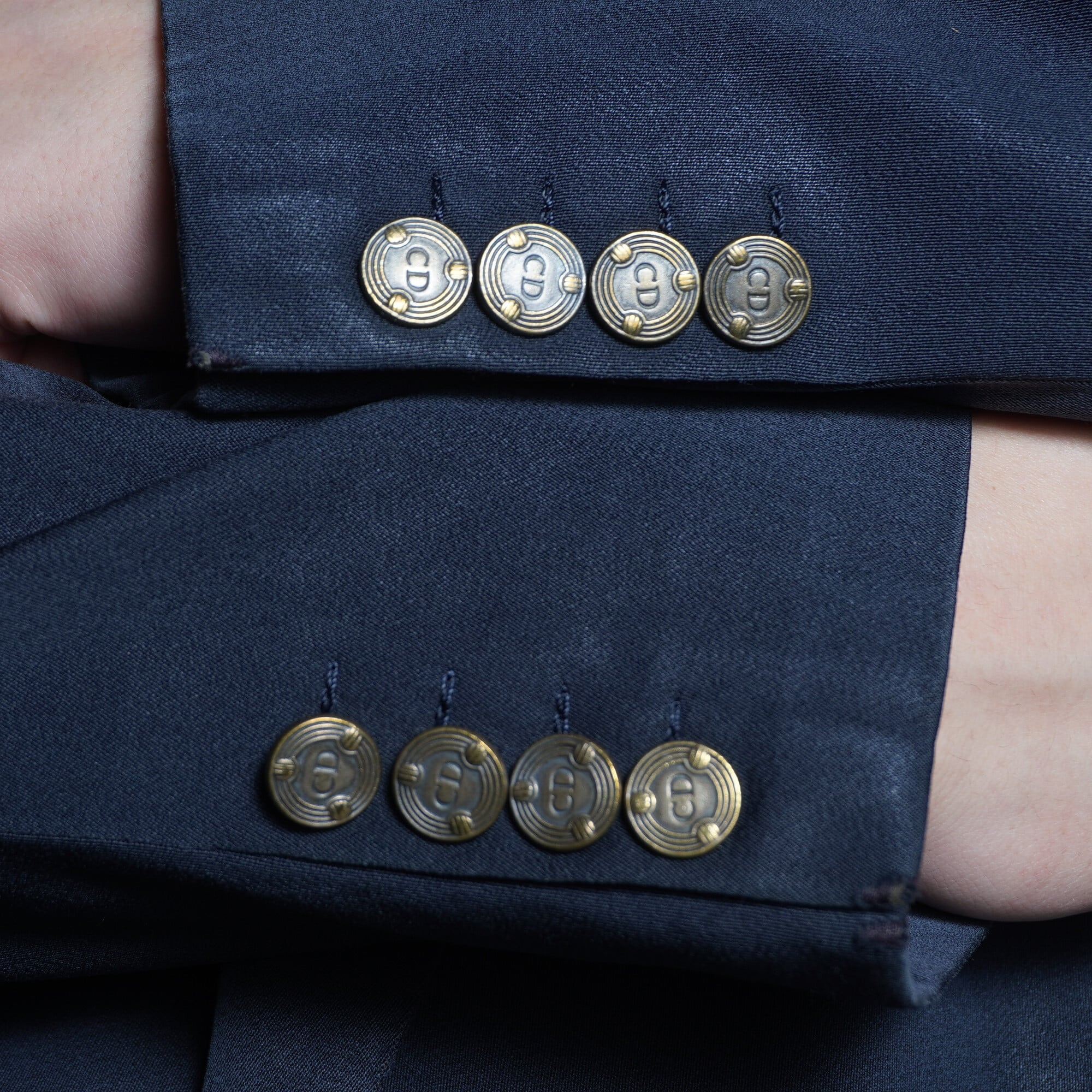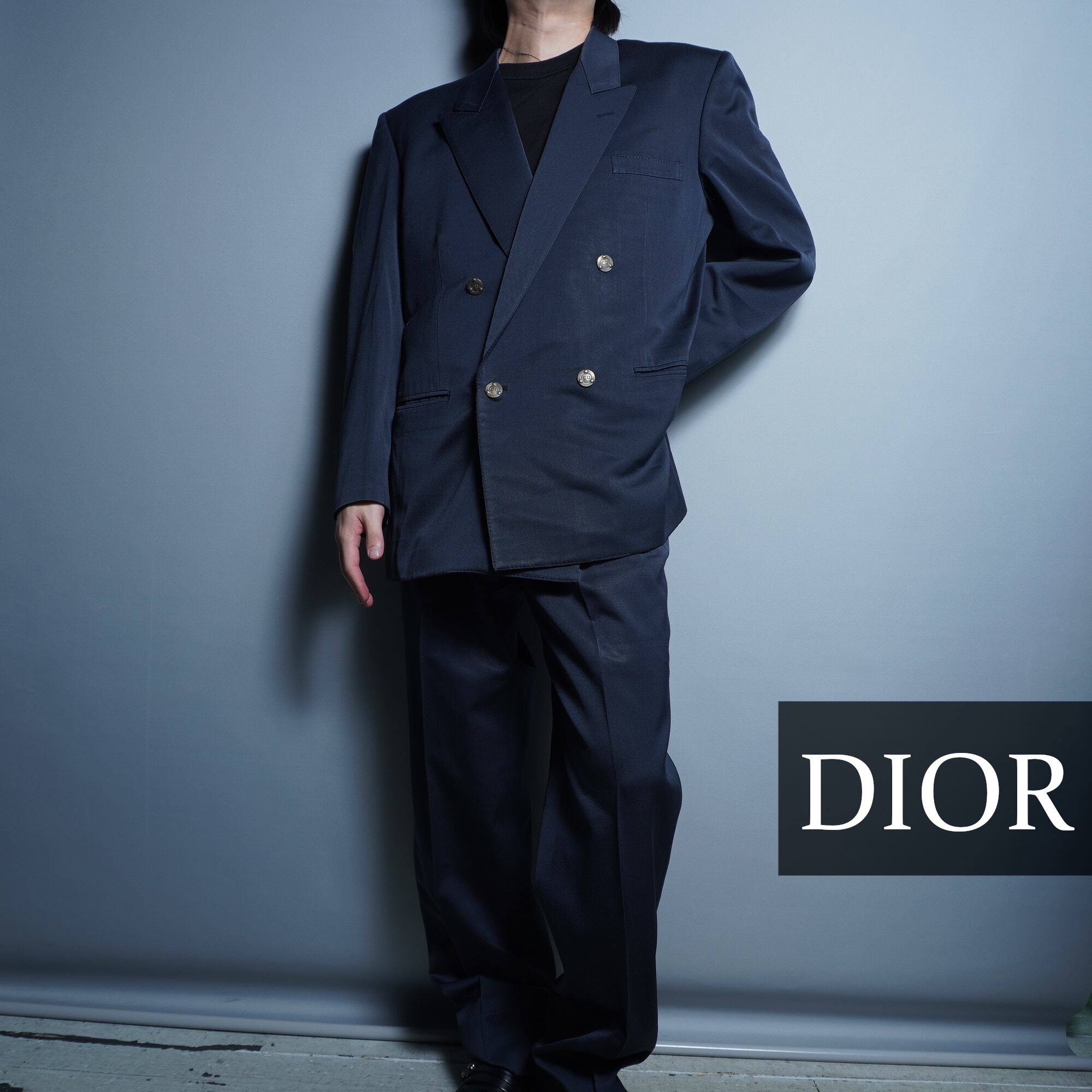 【Christian Dior】クリスチャンディオール シルキーネイビーカラー ロゴメダルボタンダブルセットアップスーツ 状態考慮