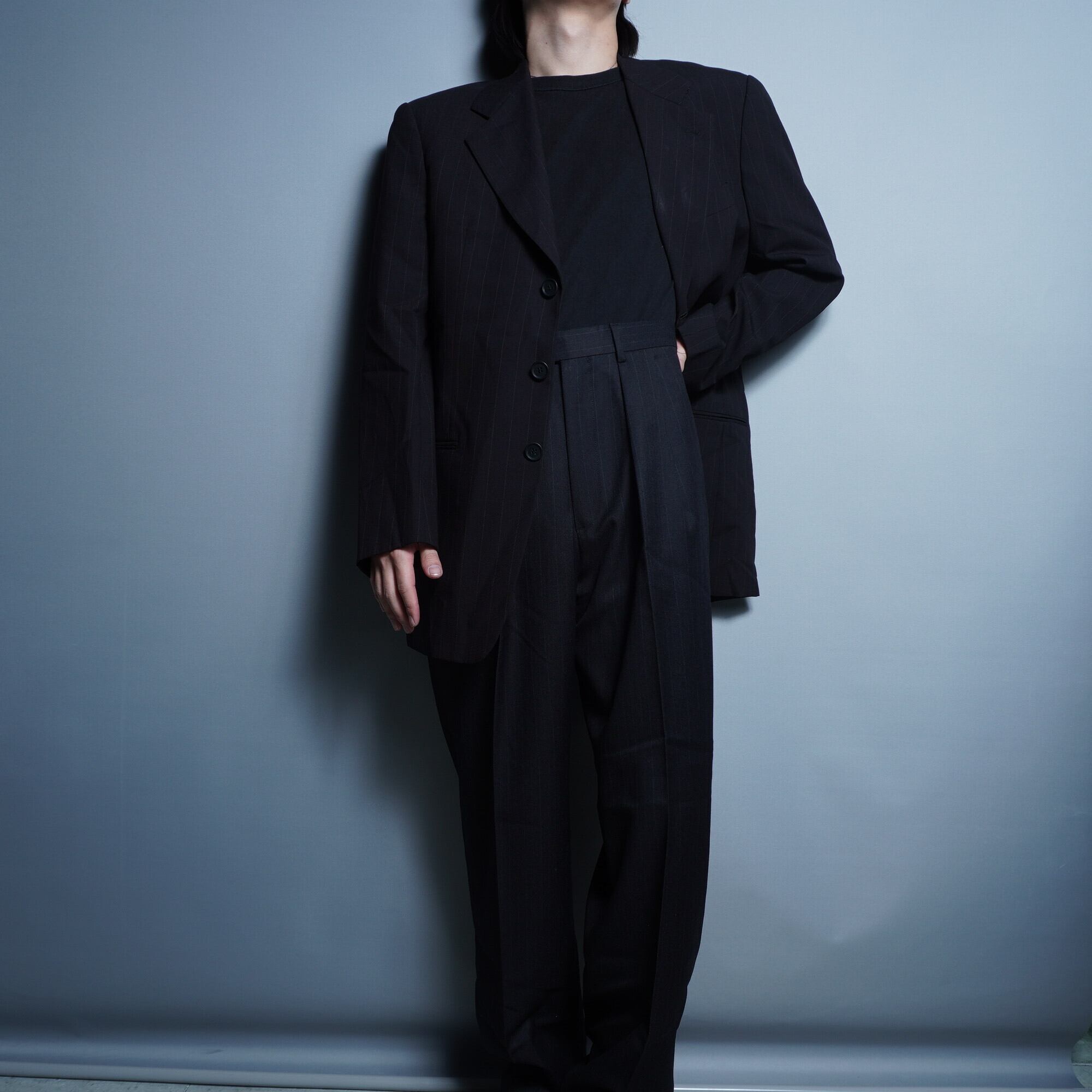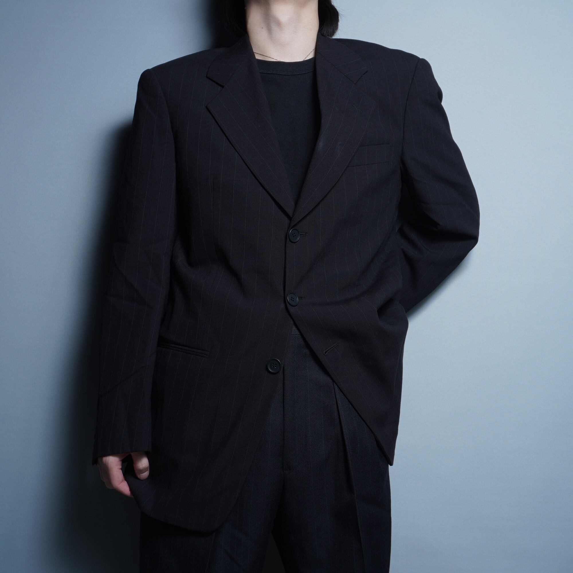 【GIORGIO ARMANI】ジョルジオアルマーニ シングル3Bストライプセットアップスーツ black