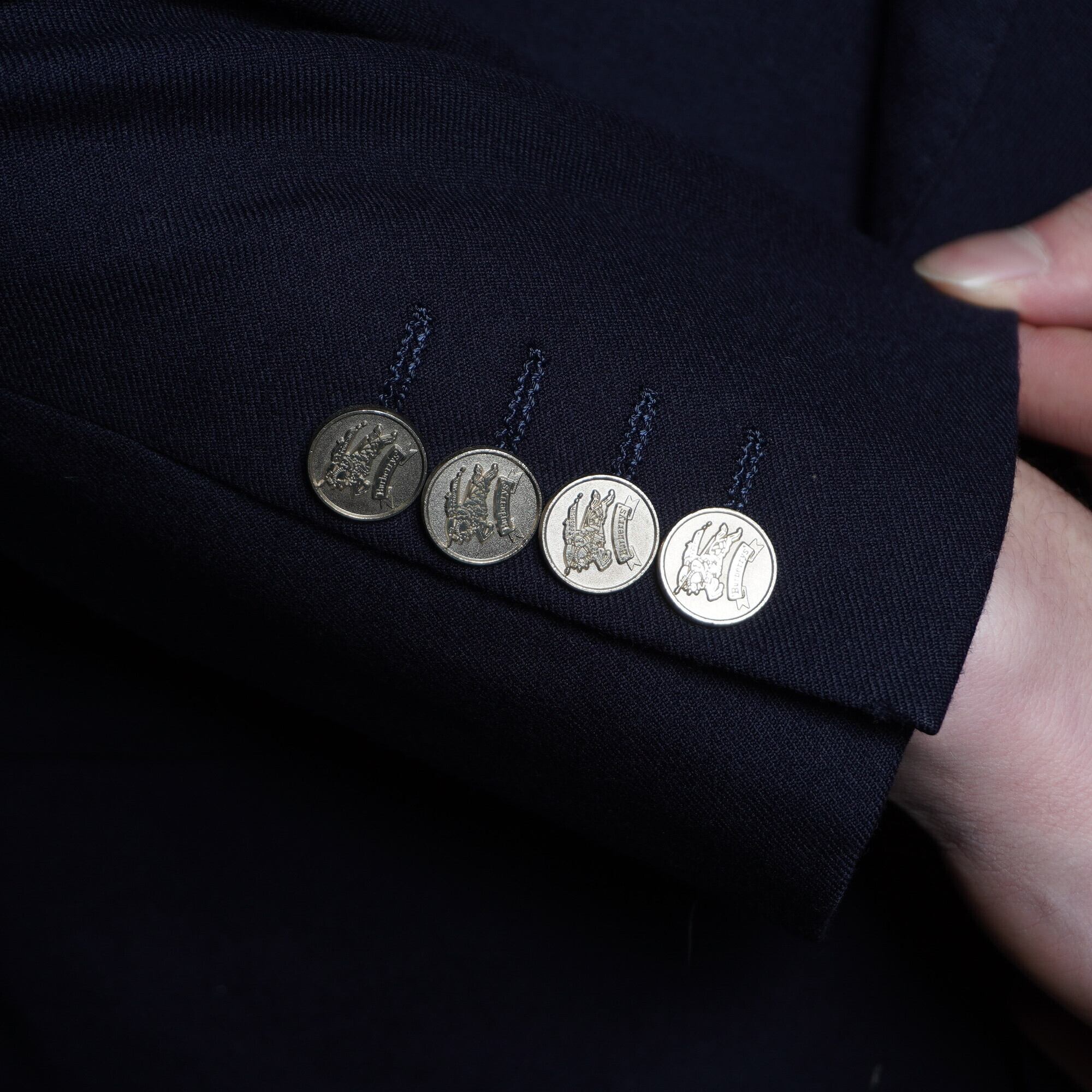 ダブルブレストのジャケットと、金ボタンの組み合わせが、クラシカルで上品な印象を与えます。 ウール素材を使用し、着心地の良さと高級感を両立しています。 身体にフィットするよう計算されたシルエットが、スタイルを良く見せてくれます。