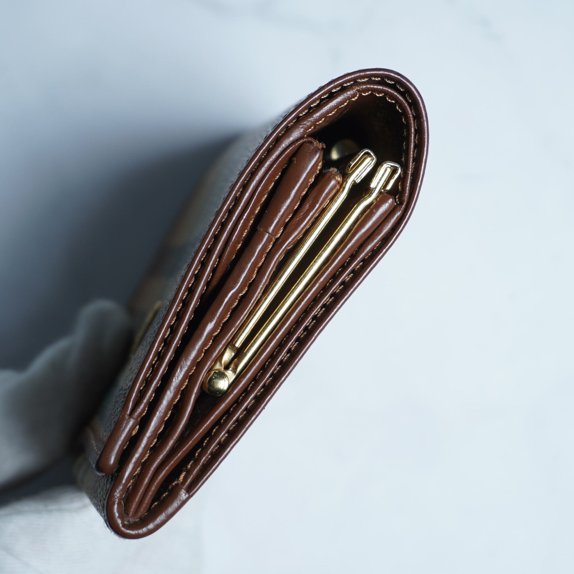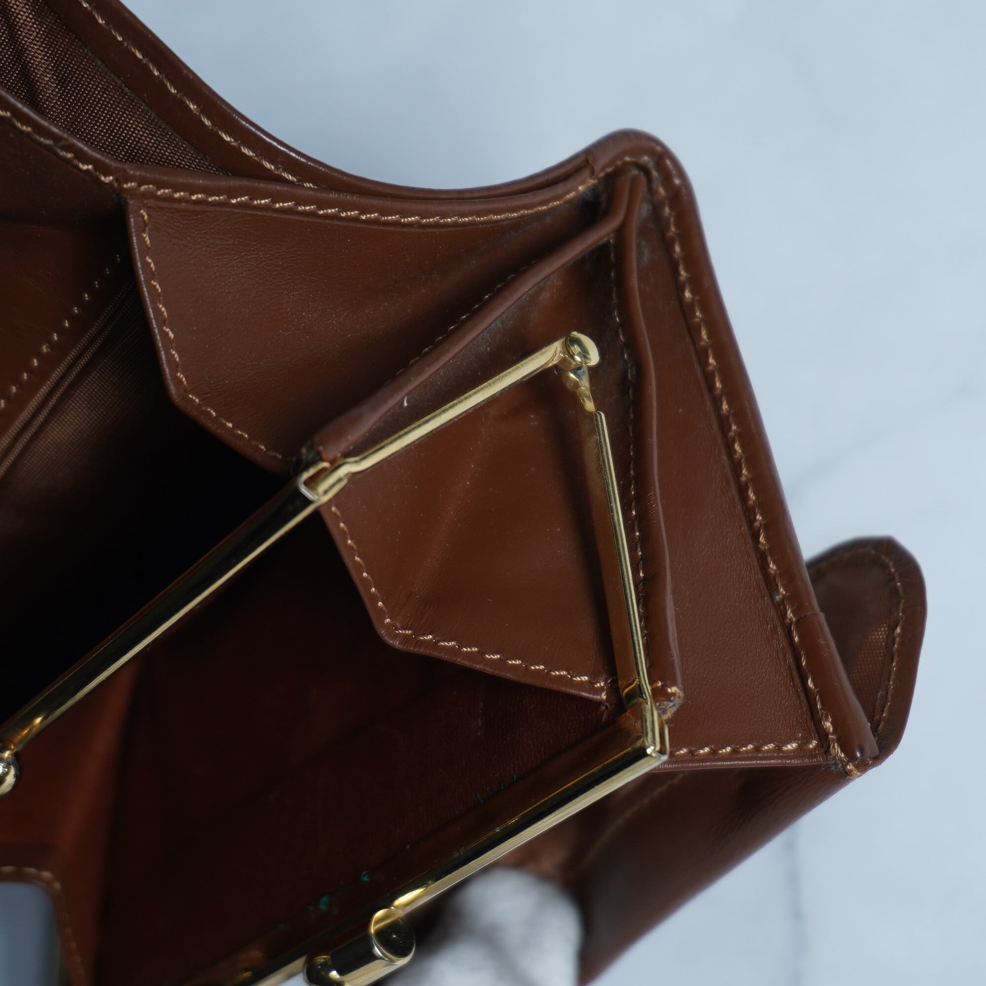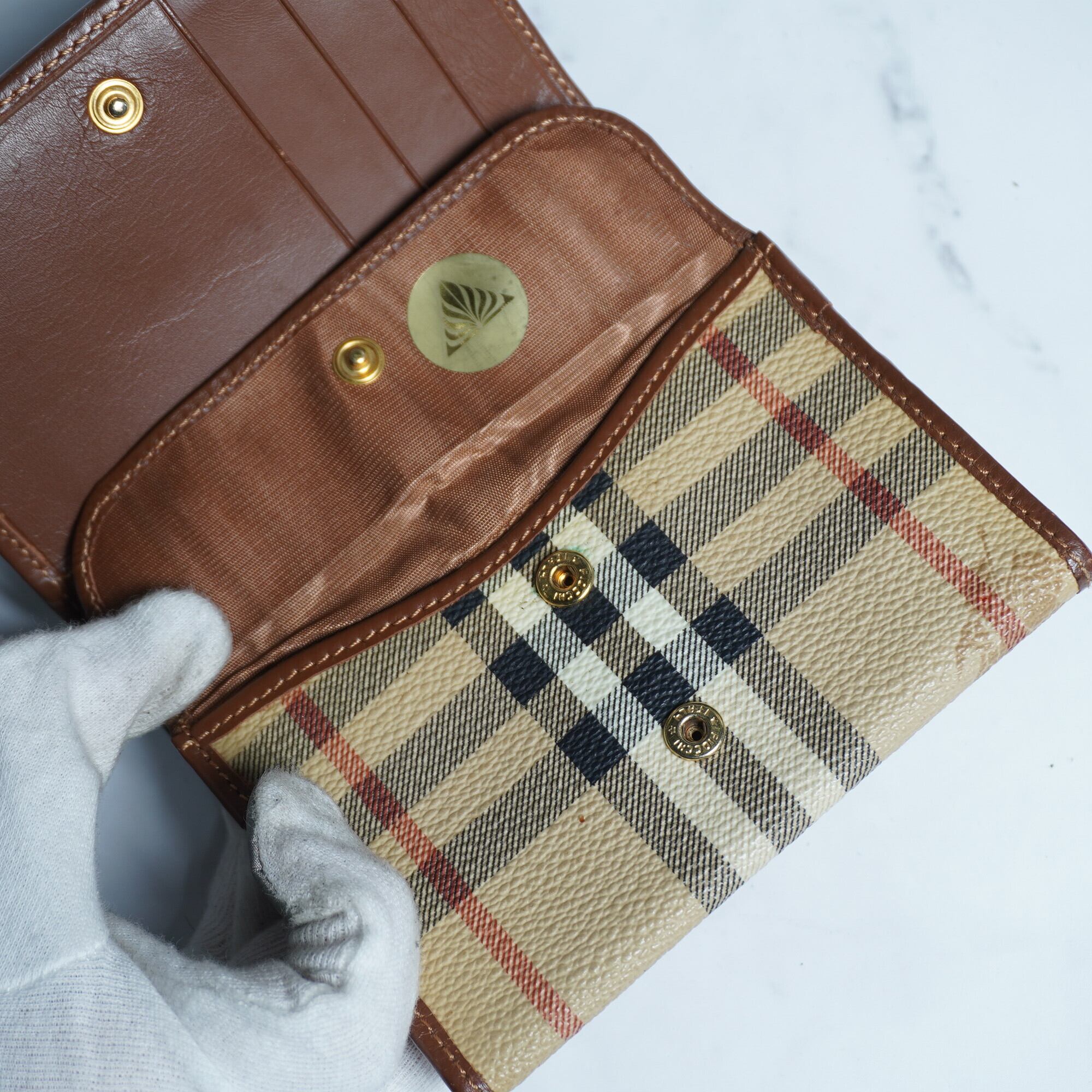 バーバリーのロゴプレートが入ったがま口財布。バーバリーの象徴的なチェック柄が全面にあしらわれ、上品でトラディショナルな印象を与えます。コインケース部分がガマ口タイプなので、小銭の出し入れがしやすく、使い勝手も抜群です。