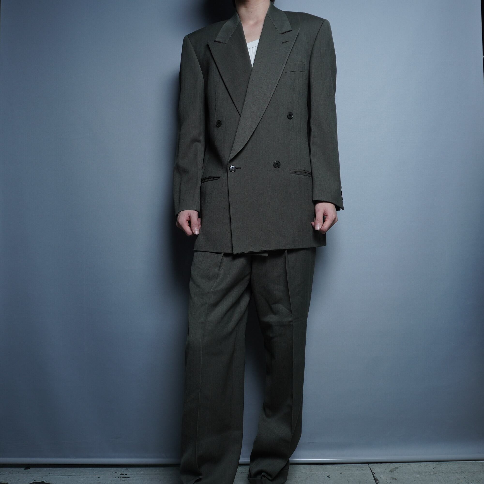 【GIORGIO ARMANI】ジョルジオアルマーニ イタリア製 シャドーへリンボーン ダブルセットアップスーツ khaki