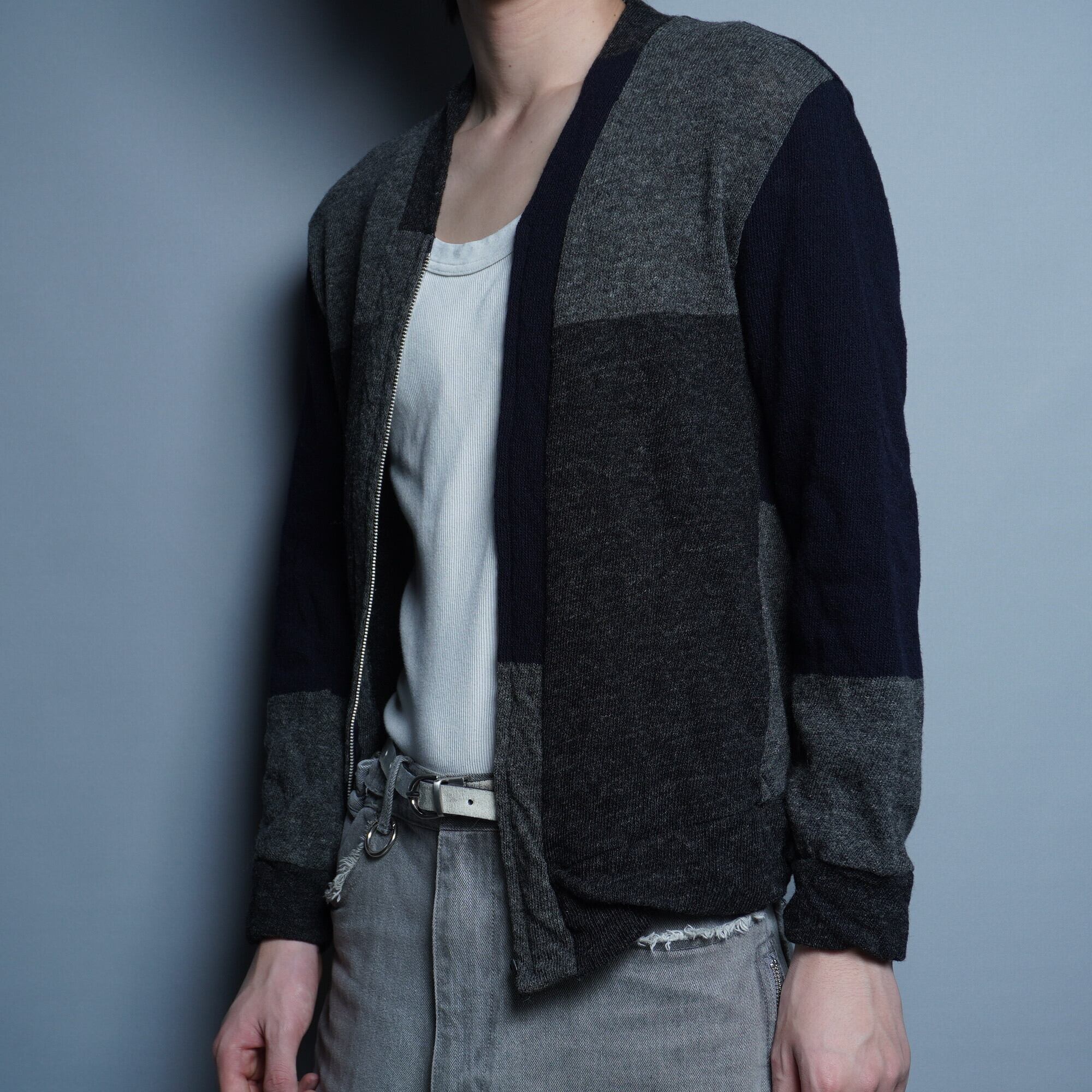 【COMME des GARÇONS HOMME】コムデギャルソン オム 99AW アーカイブ エルメス期 捩れ パネル切替 ZIPカーディガン gray × navy