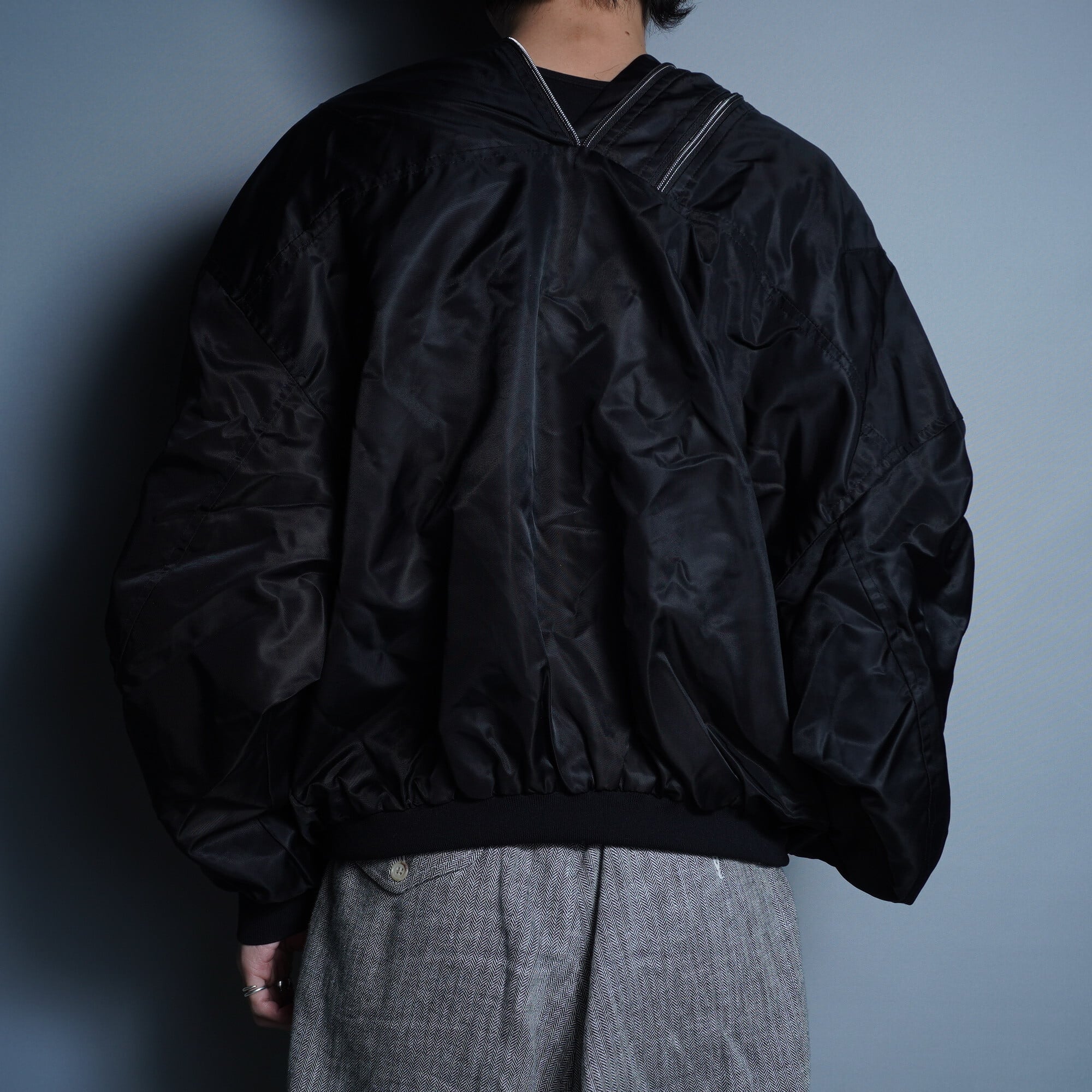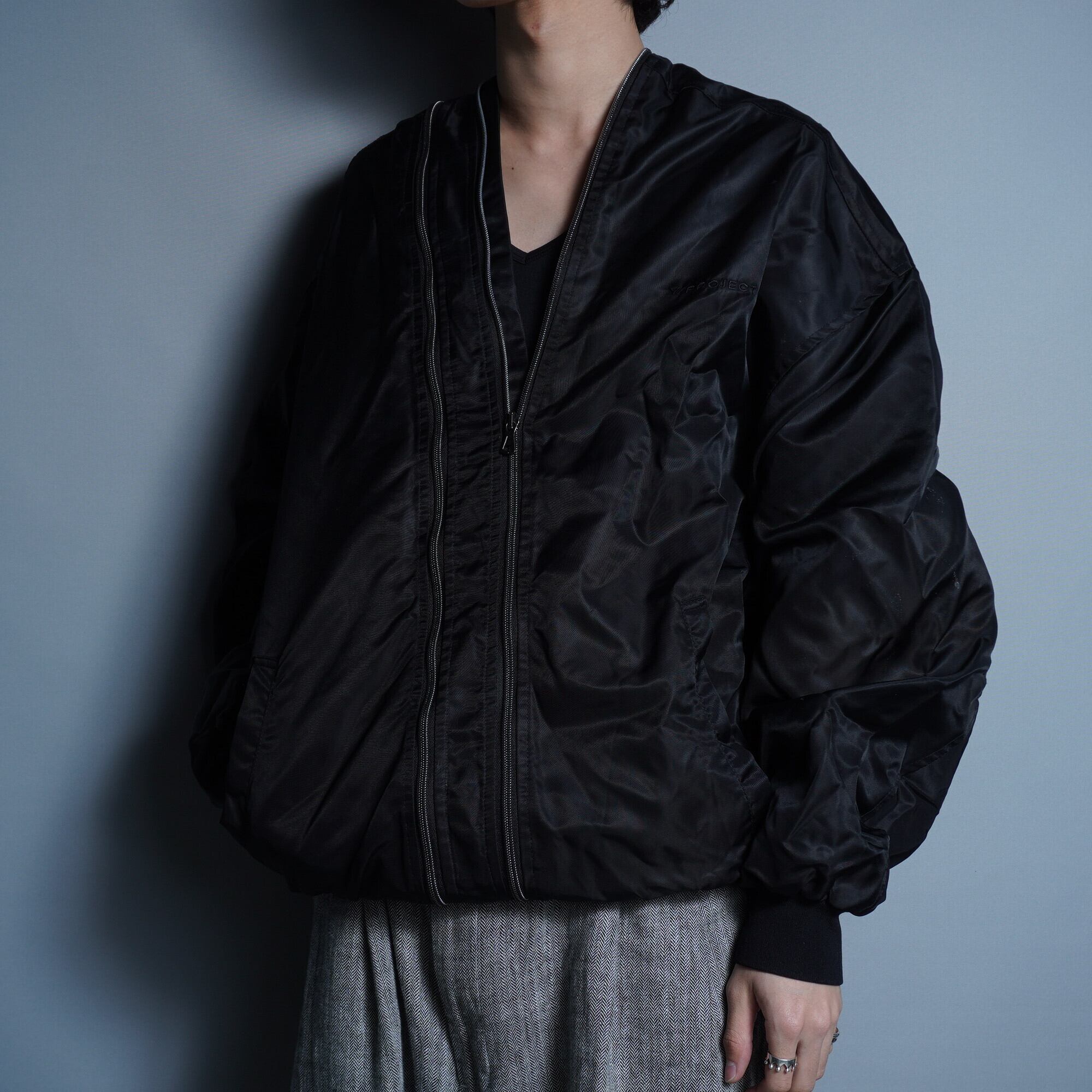ワイプロジェクトのボンバージャケットが入荷いたしました。なんといっても目を惹くのが特殊なディテール。前側から大きく開いているジップで何通りもの着方が可能な一着です。またサイズ感も面白く、肩幅がゆったりとしていることから肩を落とすトレンド感のある着こなしが可能になっています。是非とに取っていただきたいアイテムです。