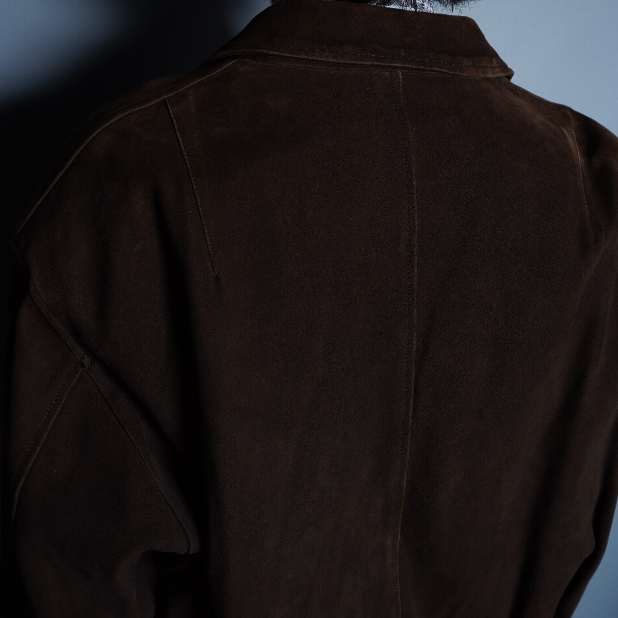 上質なシープレザー(羊革)を使用し、柔らかな着心地と上品な光沢感が特徴です。ブラウンカラーは、様々なスタイルに合わせやすく、落ち着いた大人の雰囲気を演出します。ジップアップ仕様で、着脱も簡単です。