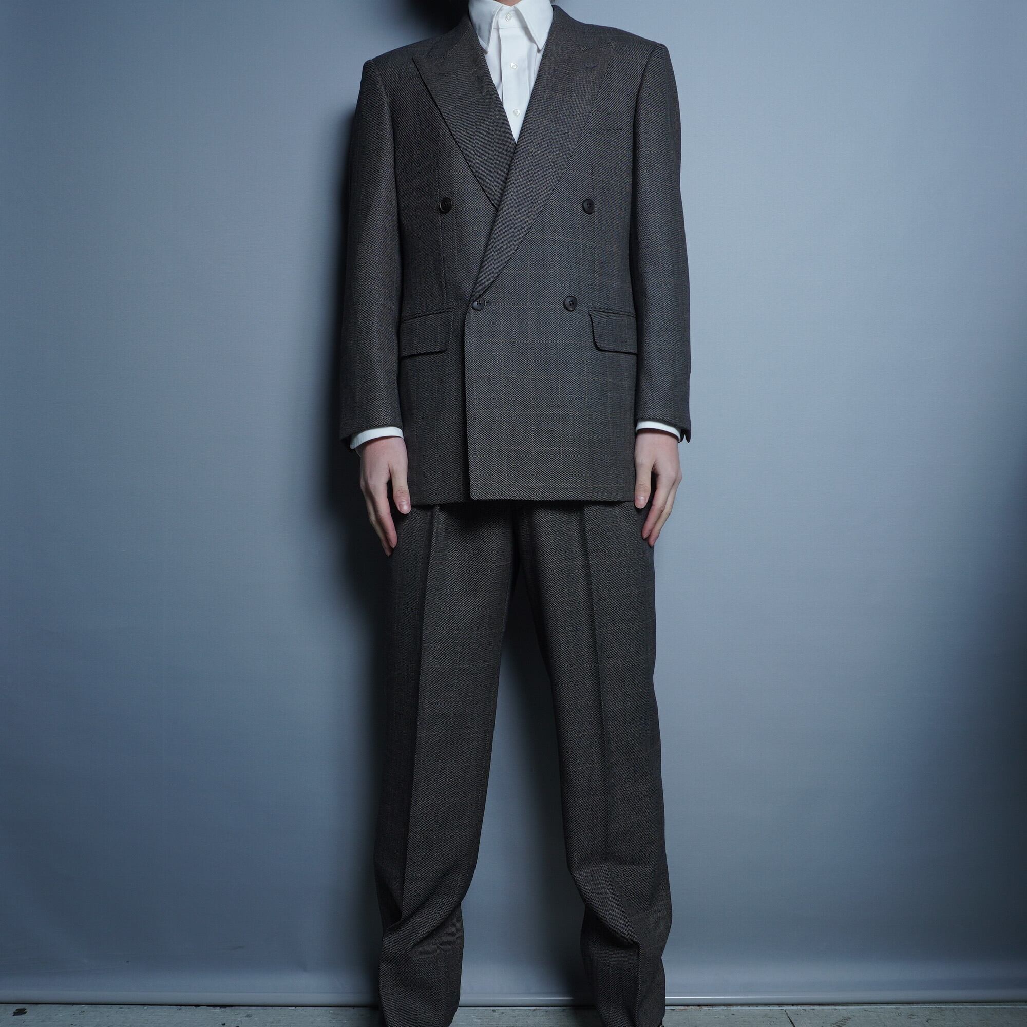 ダブルブレストのジャケットは、トラディショナルなデザインでありながら、モダンなカッティングが施されており、エレガントな印象を与えつつスマートに着こなせる仕上がり。パンツも計算されたシルエットで、程よいゆとりがありながらも美しいラインを保ちます。グレーカラーが持つ落ち着いた雰囲気は、フォーマルからビジネスシーン、さらにはドレスダウンしたスタイルにも幅広く対応。