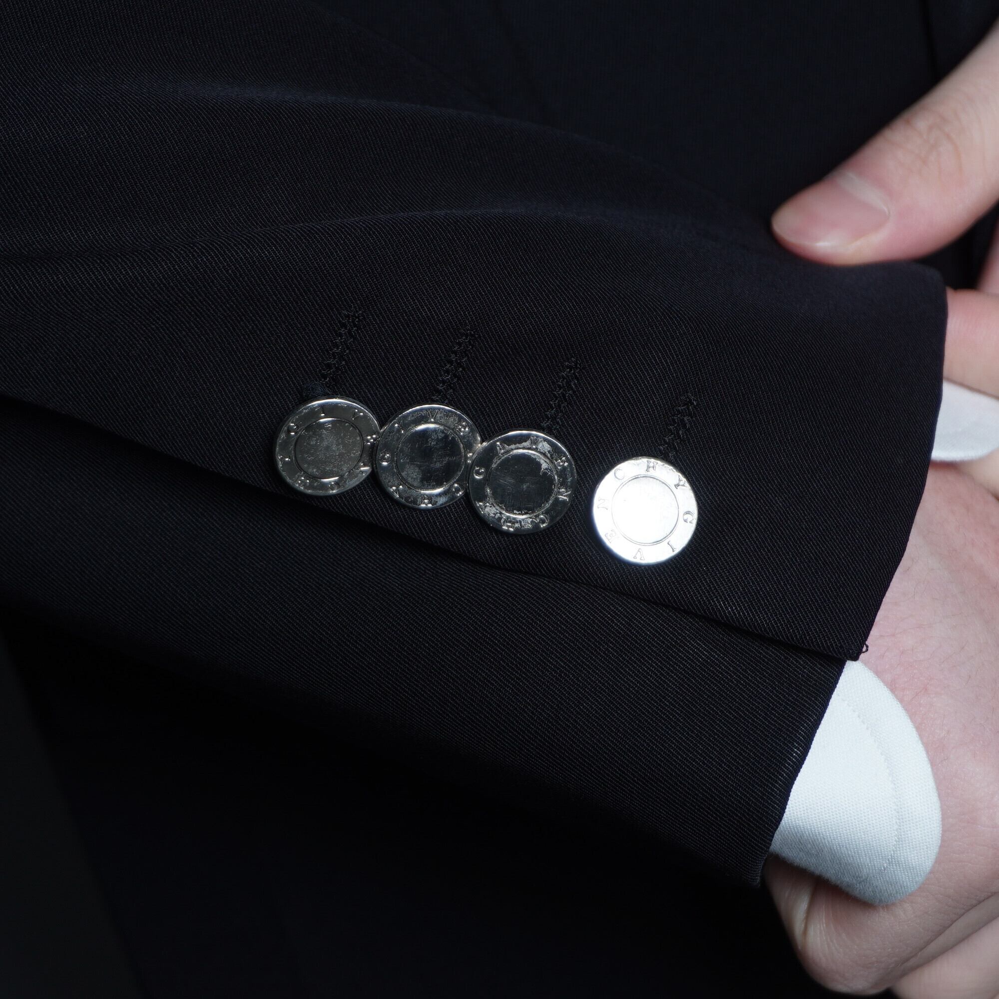 【GIVENCHY】ジバンシー 光沢ウール100%刻印シルバーボタン ダブルジャケット black