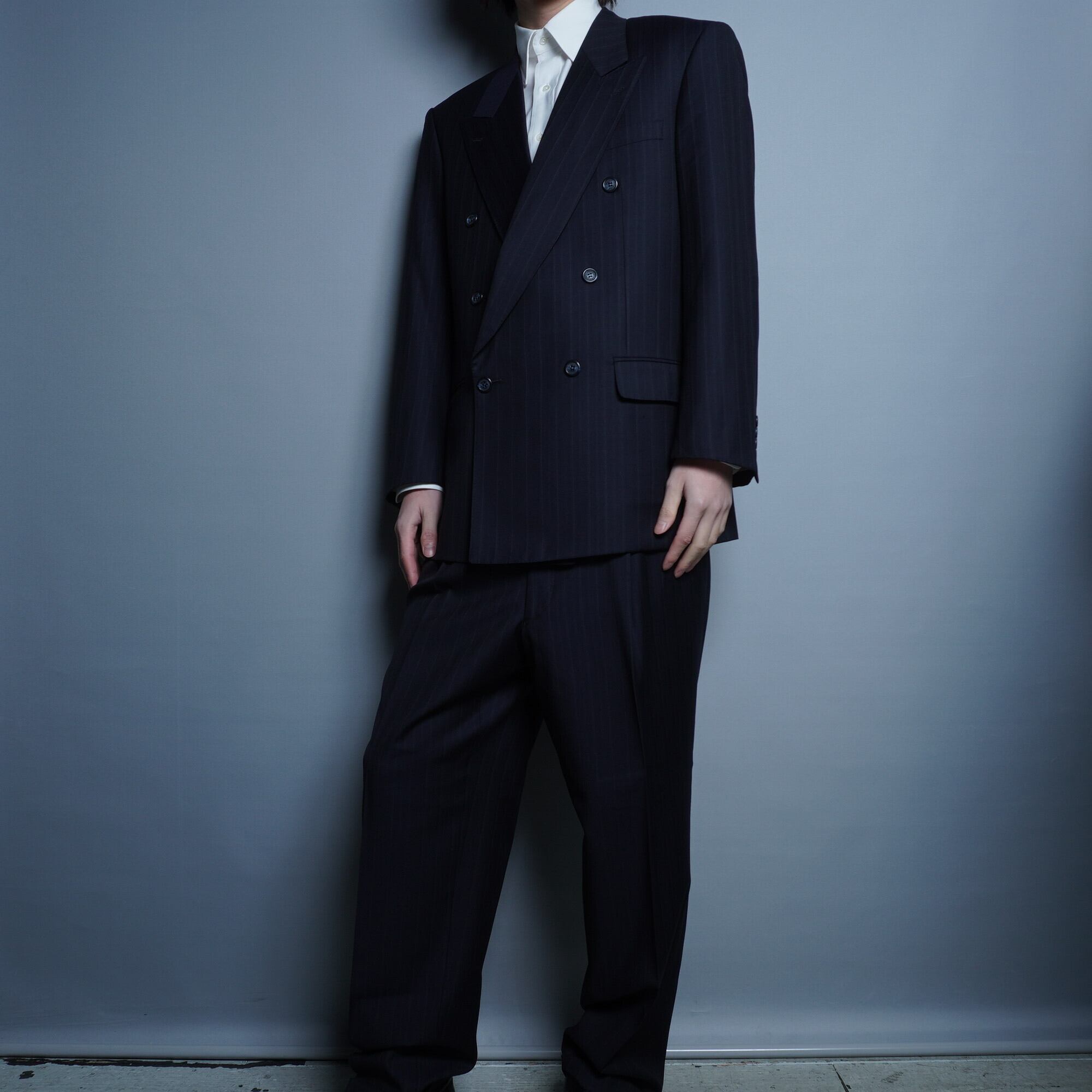 【GIVENCHY】ジバンシー ウール100% シャドーチョークストライプ 刻印ボタン ダブルセットアップスーツ